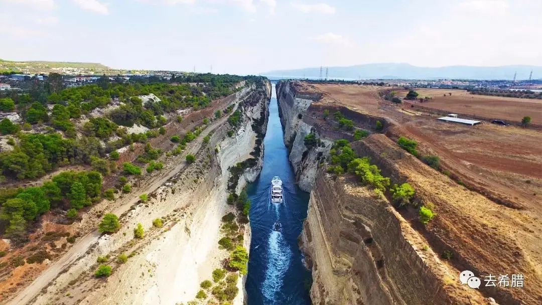 上了大巴我就睡着了,熊熊一直在拍照。窗外就是海岸,虽然不及美西一号阳光海岸那般惊艳,但依然很美。途中我们路过了柯林斯运河,它是横穿柯林斯地峡的一条运河,将伯罗奔尼撒半岛和希腊大陆分割开来,可惜我在睡觉没有看到,只好借用网上的图了。