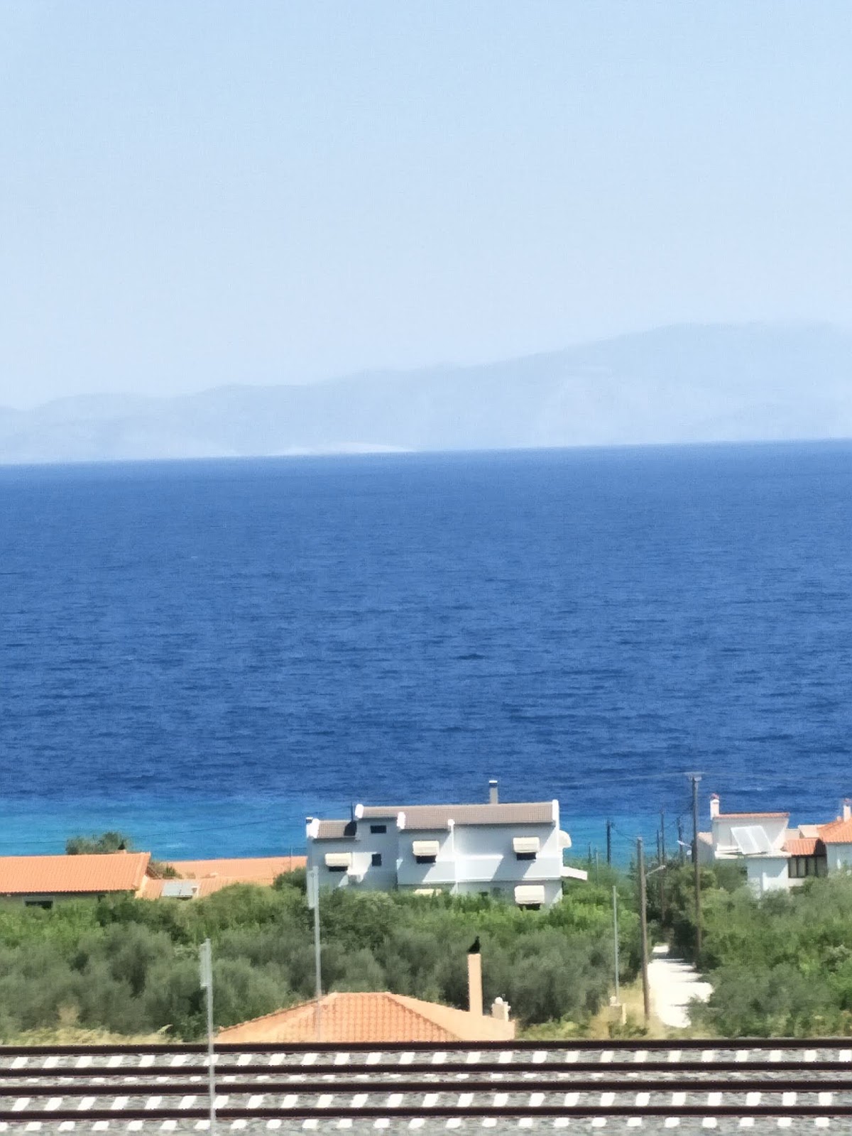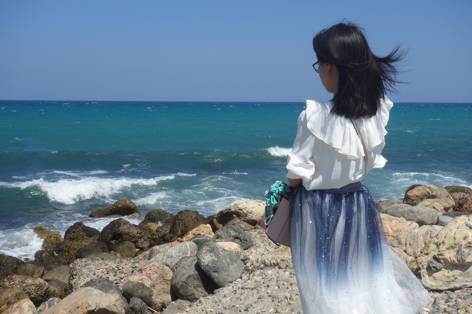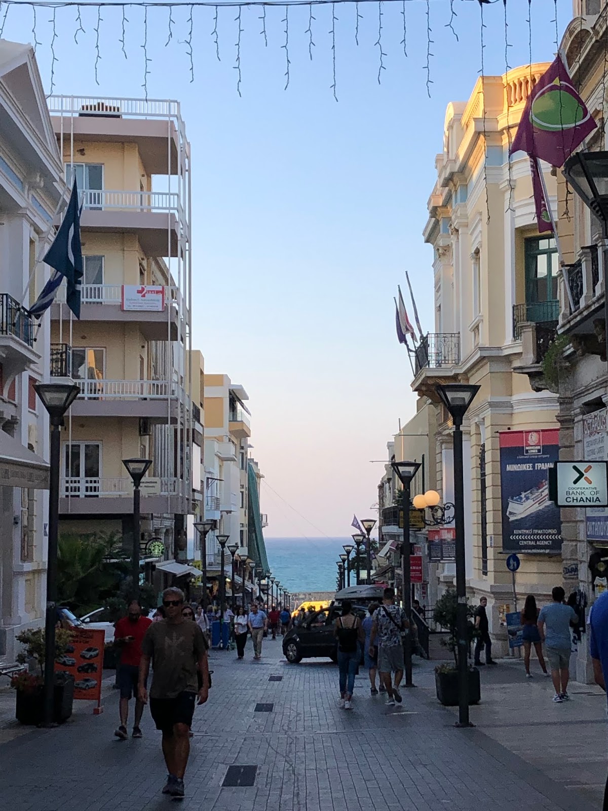 我们想去海边玩,突然一个转角,来到一条街上,我们就看到街的尽头有蓝蓝的海,仿佛大海触手可及。这会儿已经接近傍晚了,天也不热了,终于要见到传说中的爱琴海了,我太兴奋了。