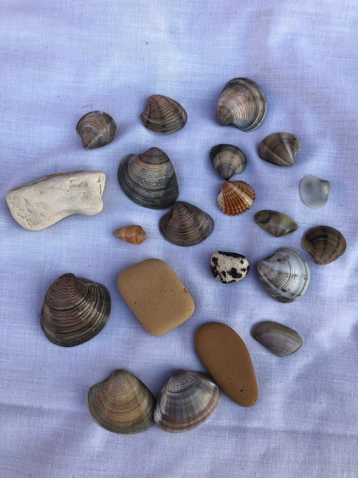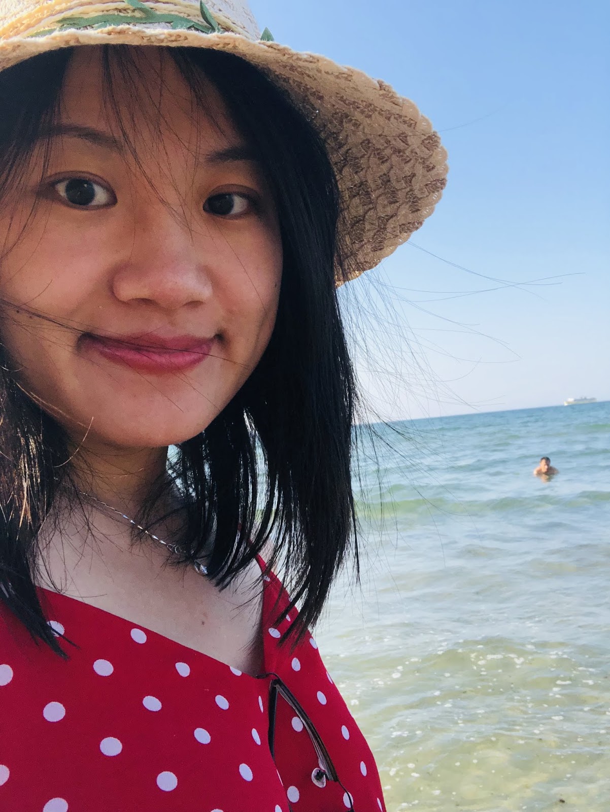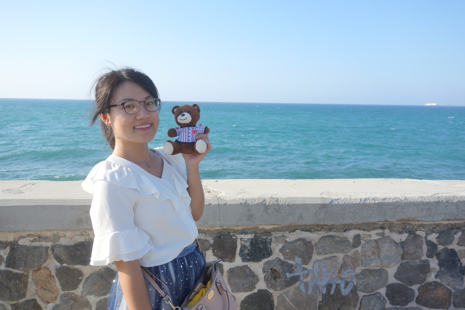 来到海边,我俩在浅海里打闹,本来熊要教我游泳,但我头一埋进海水里就狂喝海水。那一会儿就喝了好几口海水。没办法只能让他自己去游了,我跑到岸边放松。某人在海里游了好久,还给我捡了许多小贝壳。