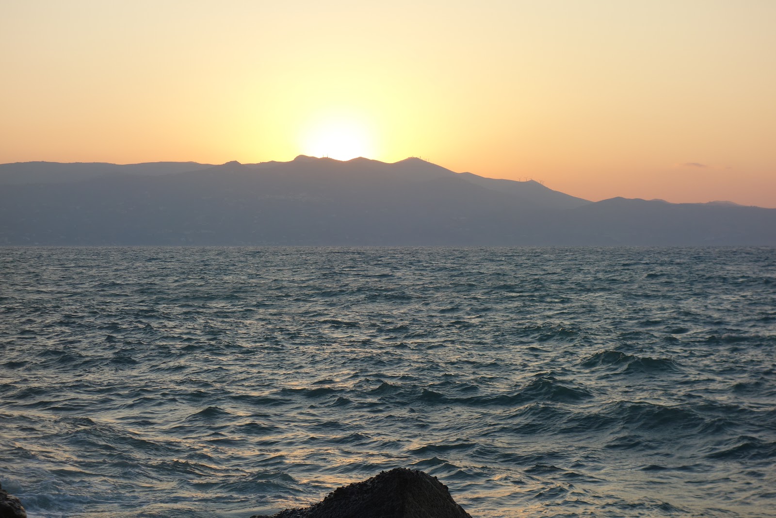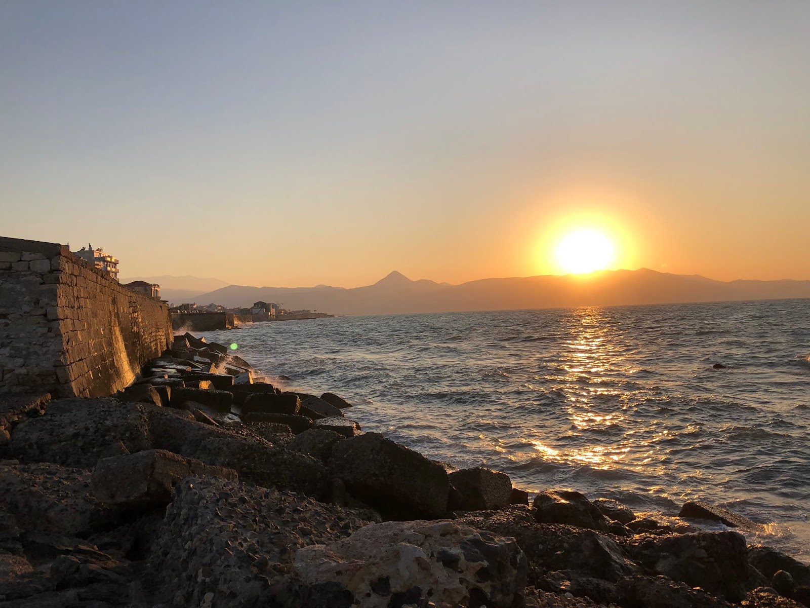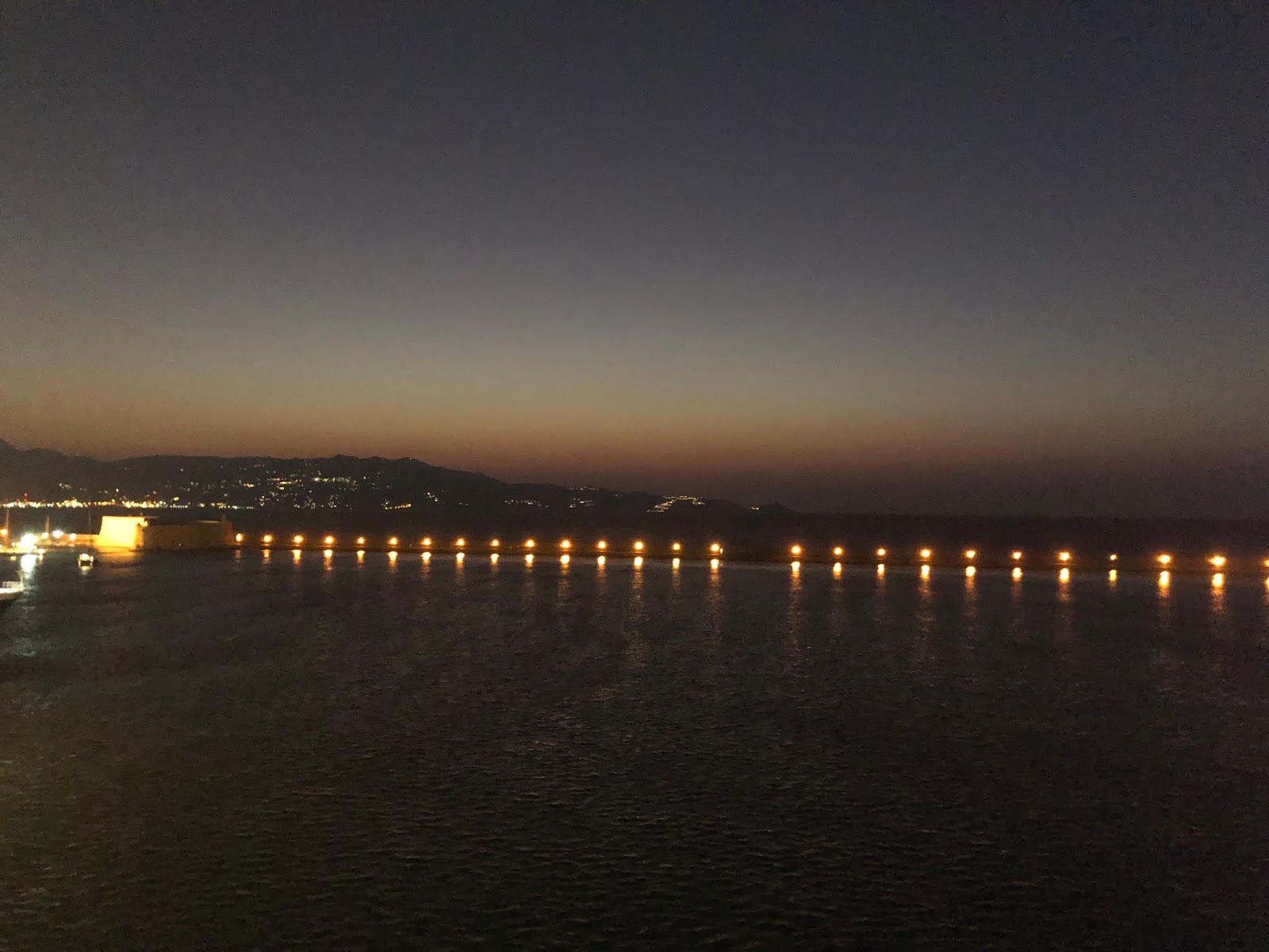 飞机落地伊拉克里翁时,已经是傍晚时分了。可能是因为对这座岛有一种先入为主的感受,总感觉克里特的天空很空旷,天边的云朵被余晖映照得有一种暮霭沉沉楚天阔的意境,像一首遥远的歌,又像是文明燃烧过的灰烬。我告诉自己我来到了一片神秘的土地,我都无法确定我今生还会不会来第二次,因为它很小众。它有着最古老的传说,还曾有过最灿烂的文明。