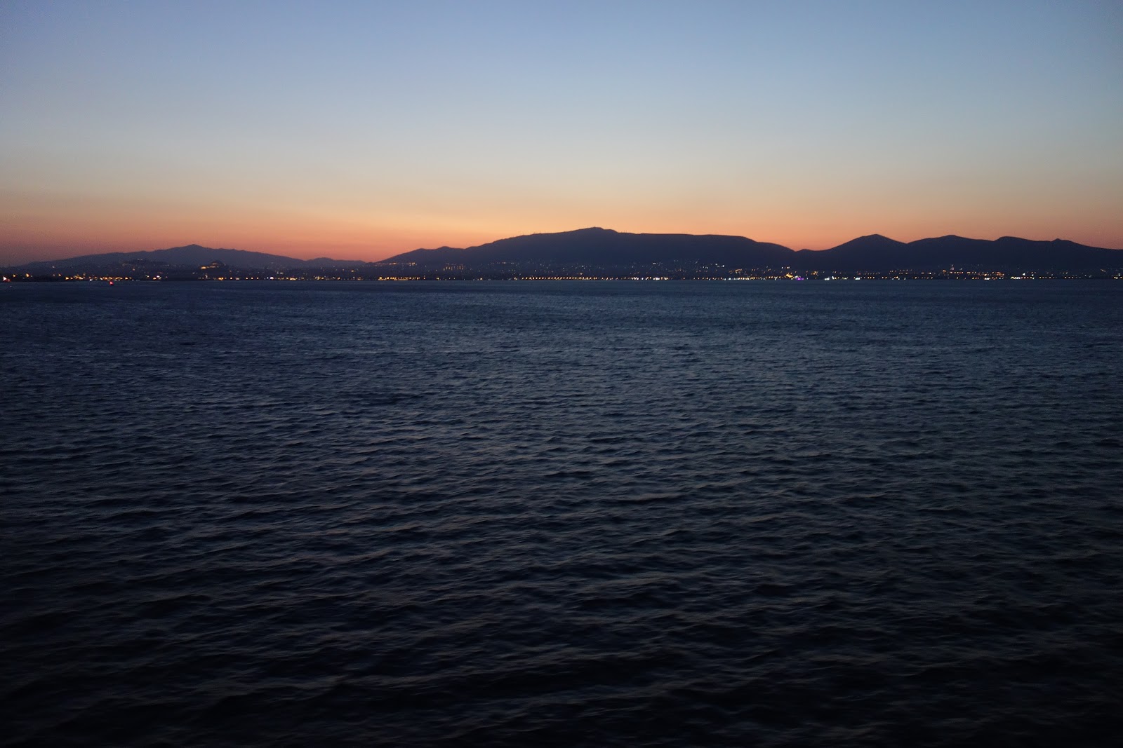 “五星红旗迎风飘扬”,伴着某人的闹铃声,我俩使劲地从床上坐起来。船马上就要靠岸了,但是因为还想看看早上的甲板什么样子,我们就赶紧洗漱,希望留点时间再去甲板看看。到甲板上来,天已经微亮了,对面的雅典在和我们招手。我们即将到达雅典最大的港口比雷埃弗斯港,他是中欧一带一路纽带重要的一环。