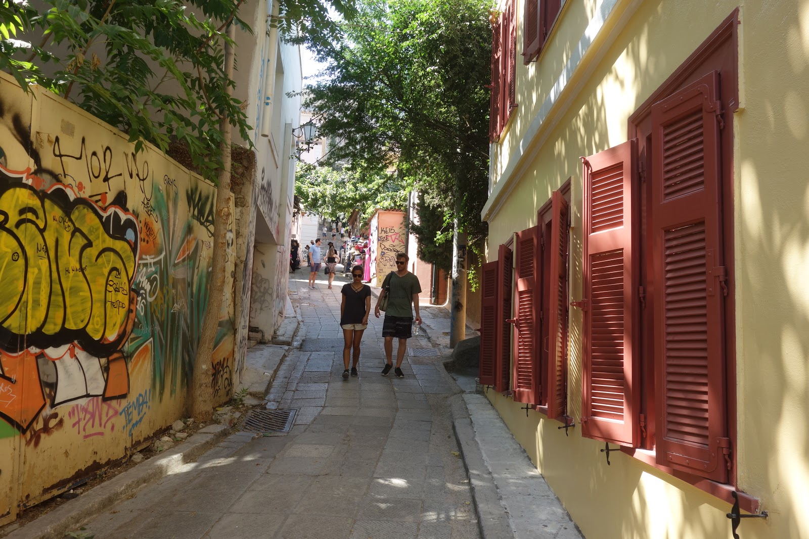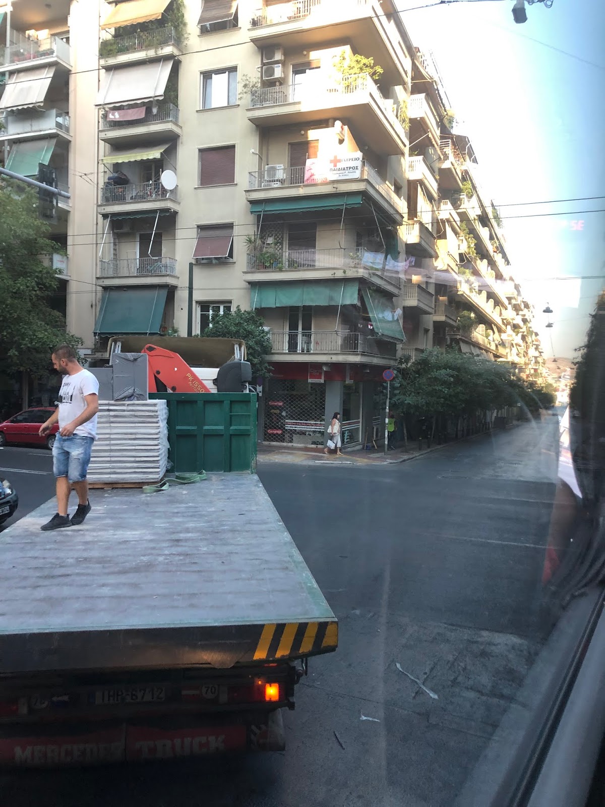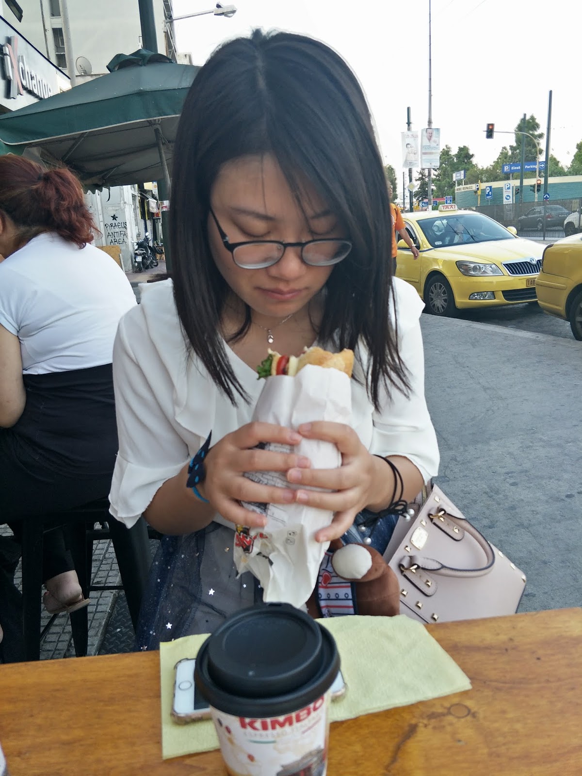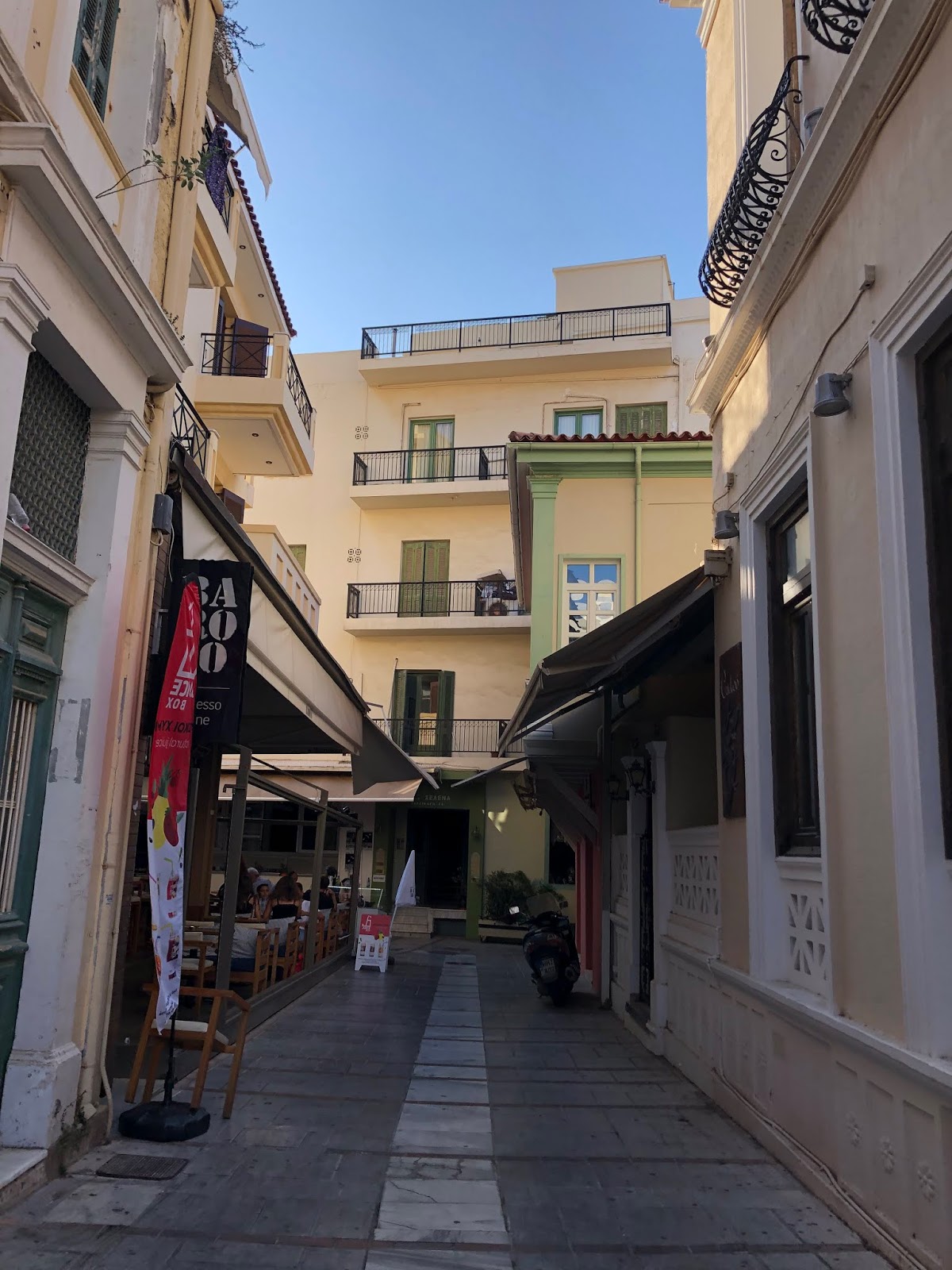 上了岸之后,雅典给我的感觉也是老旧并且充满烟火气,港口附近充斥着熙熙攘攘的人群,我俩找了家快餐店吃了早餐,还喂了好一会儿鸽子。就往酒店走去。