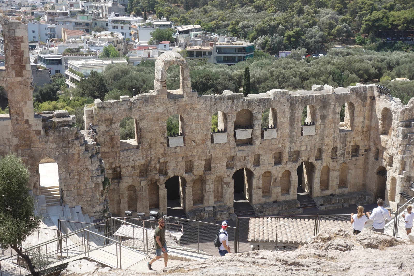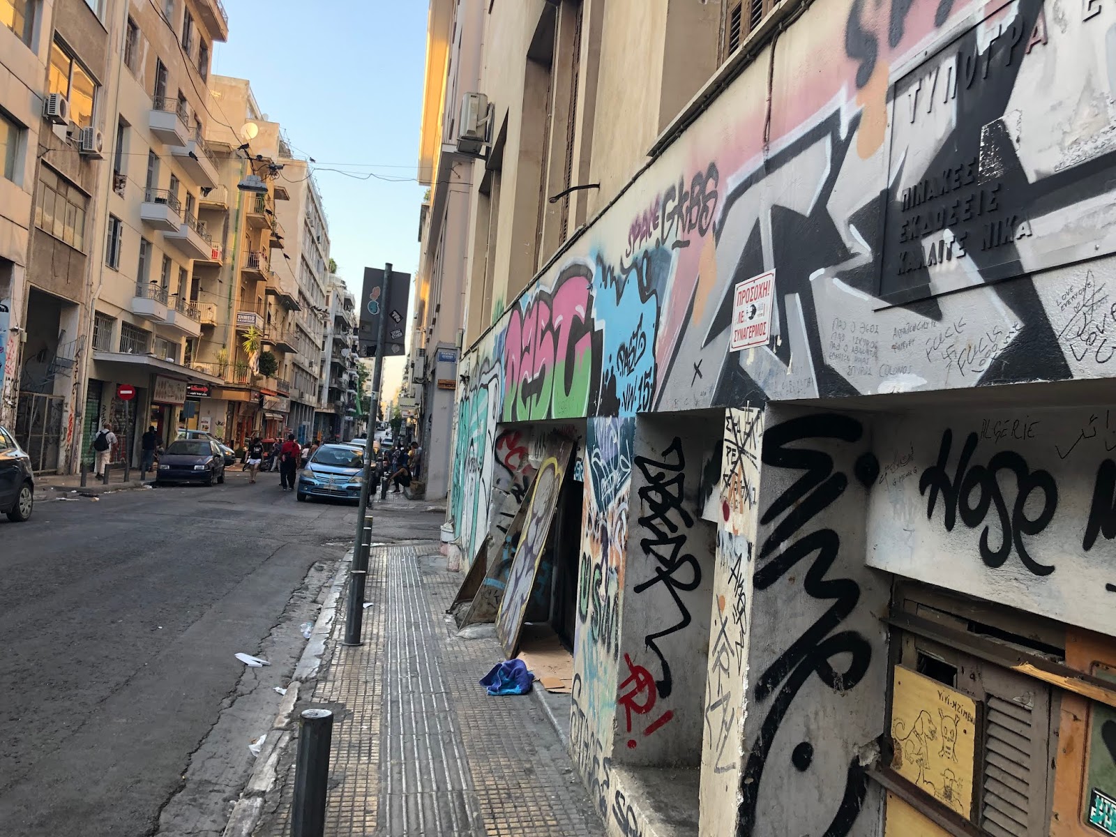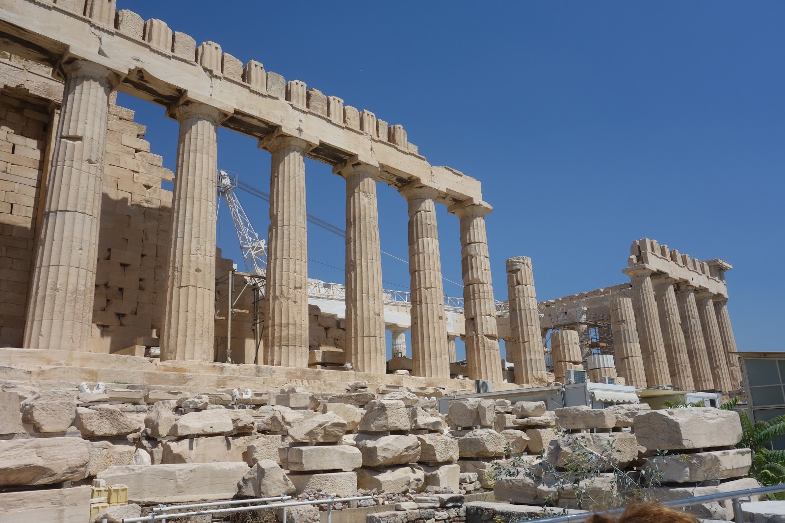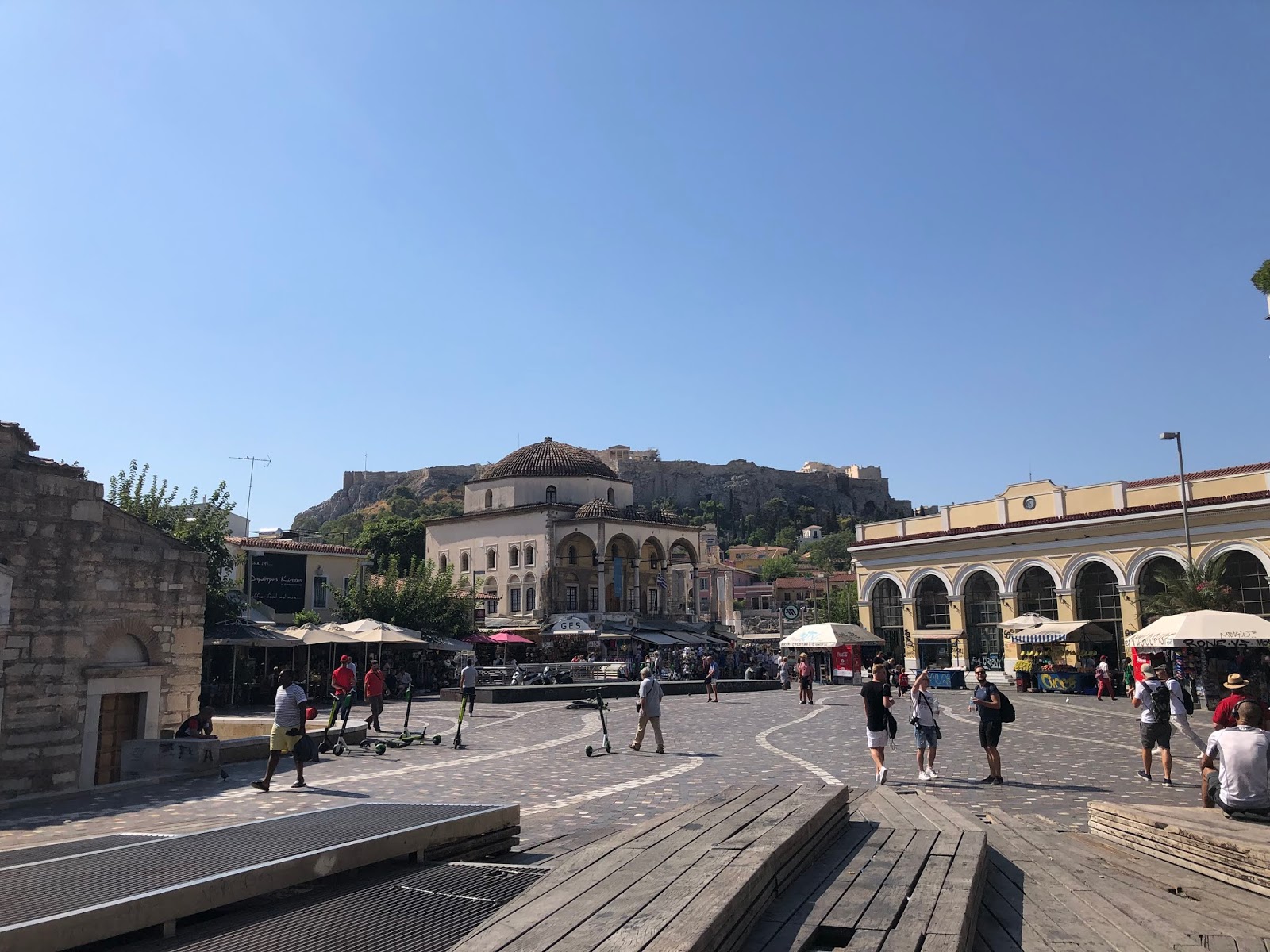 上了岸之后,雅典给我的感觉也是老旧并且充满烟火气,港口附近充斥着熙熙攘攘的人群,我俩找了家快餐店吃了早餐,还喂了好一会儿鸽子。就往酒店走去。