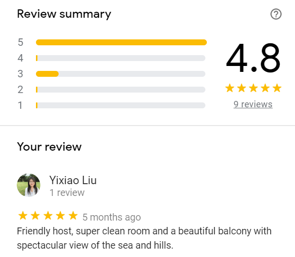 为了好好体验海岛风光,这次熊给我们订的民宿。刚从出租车下来,看到眼前丛林掩映中的二层小别墅,旁边还有朵朵鲜花,这就是我想象的样子。刚下车,房子的主人Lisa 就出来迎接我们了。Lisa是位六七十岁的老奶奶,个子小小的,一看就是很好接触的那类人,英语不是很流畅,出来硬是要帮我拎行李。我在谷歌上看,这间民宿其实没开多久。Lisa好像是在城市退休的老奶奶来这里养老的。我们的房间在二楼,她把我们送到房间,告诉我们有任何需求可以跟她说。房间超级干净宽敞,最喜欢的是阳台,很诗情画意的感觉,站在阳台就能看到对面的大海,心旷神怡。