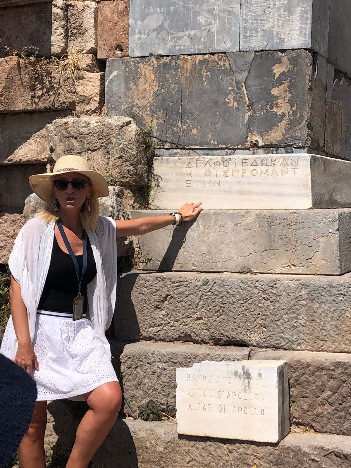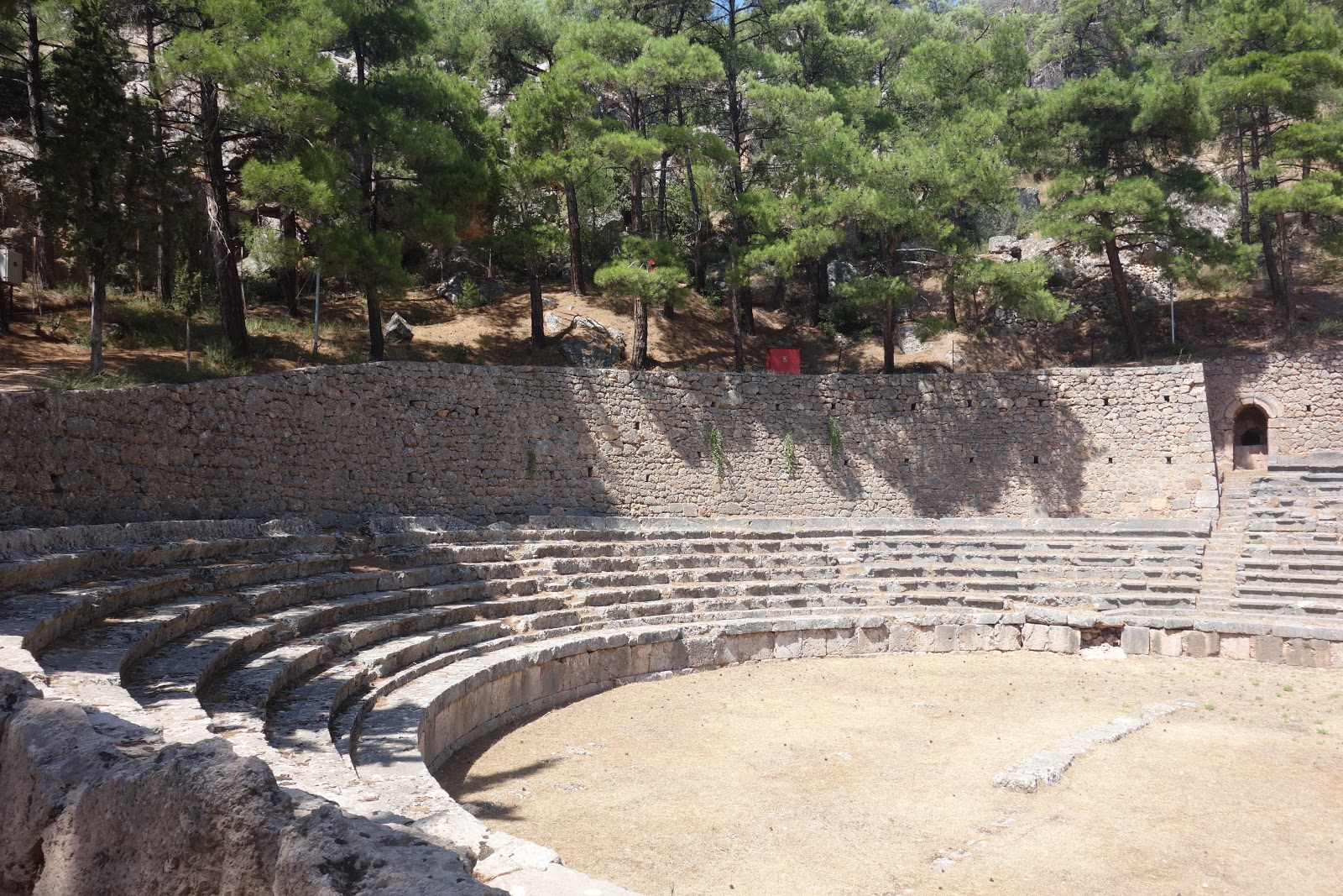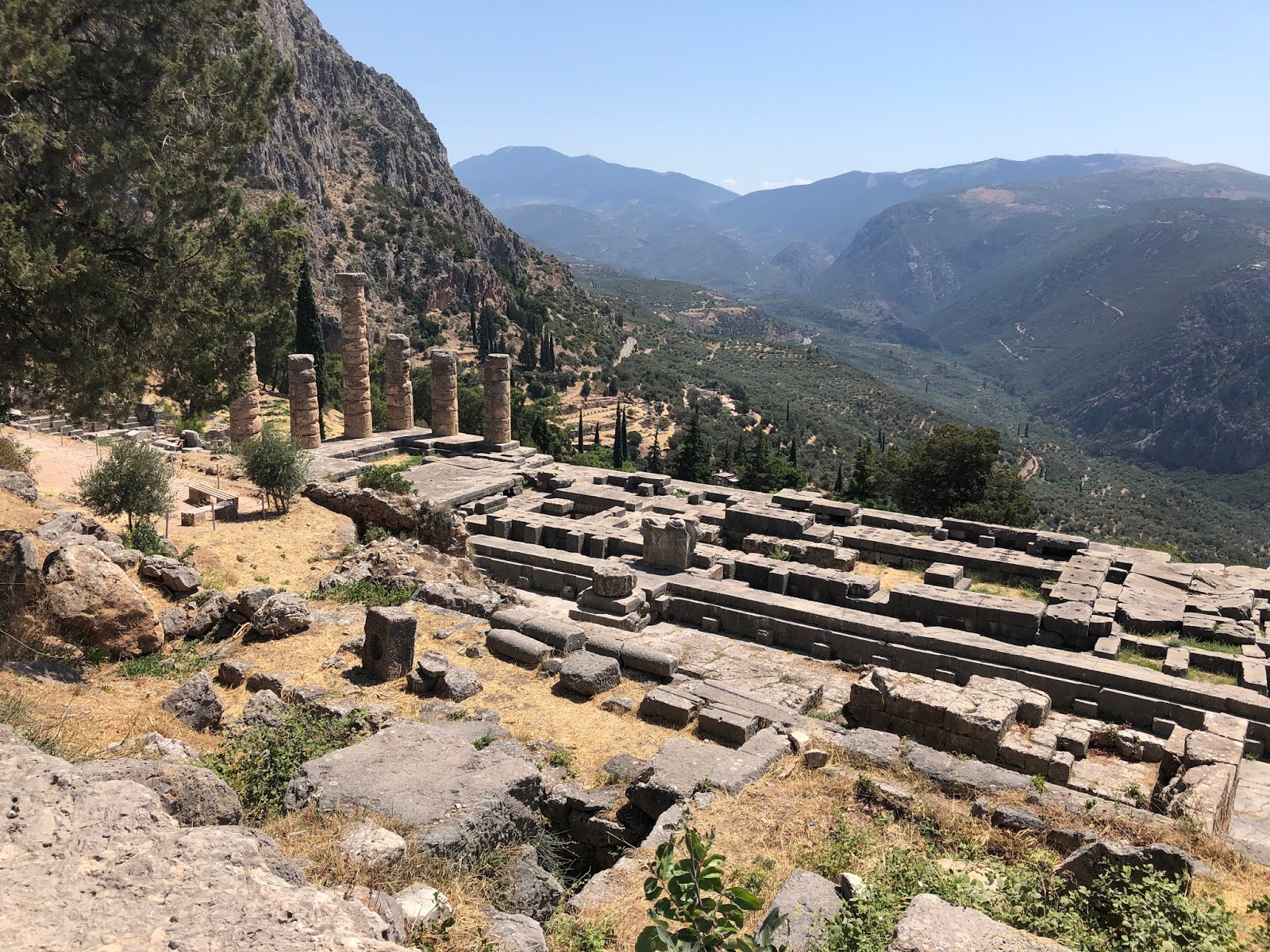 德尔菲最有名的是它的神谕。相传3000年前在阿波罗神殿门口有三句石刻铭文,当然是古希腊语刻的,翻译过来是“认识你自己”,“凡是勿过度”,“妄立誓则祸近”。