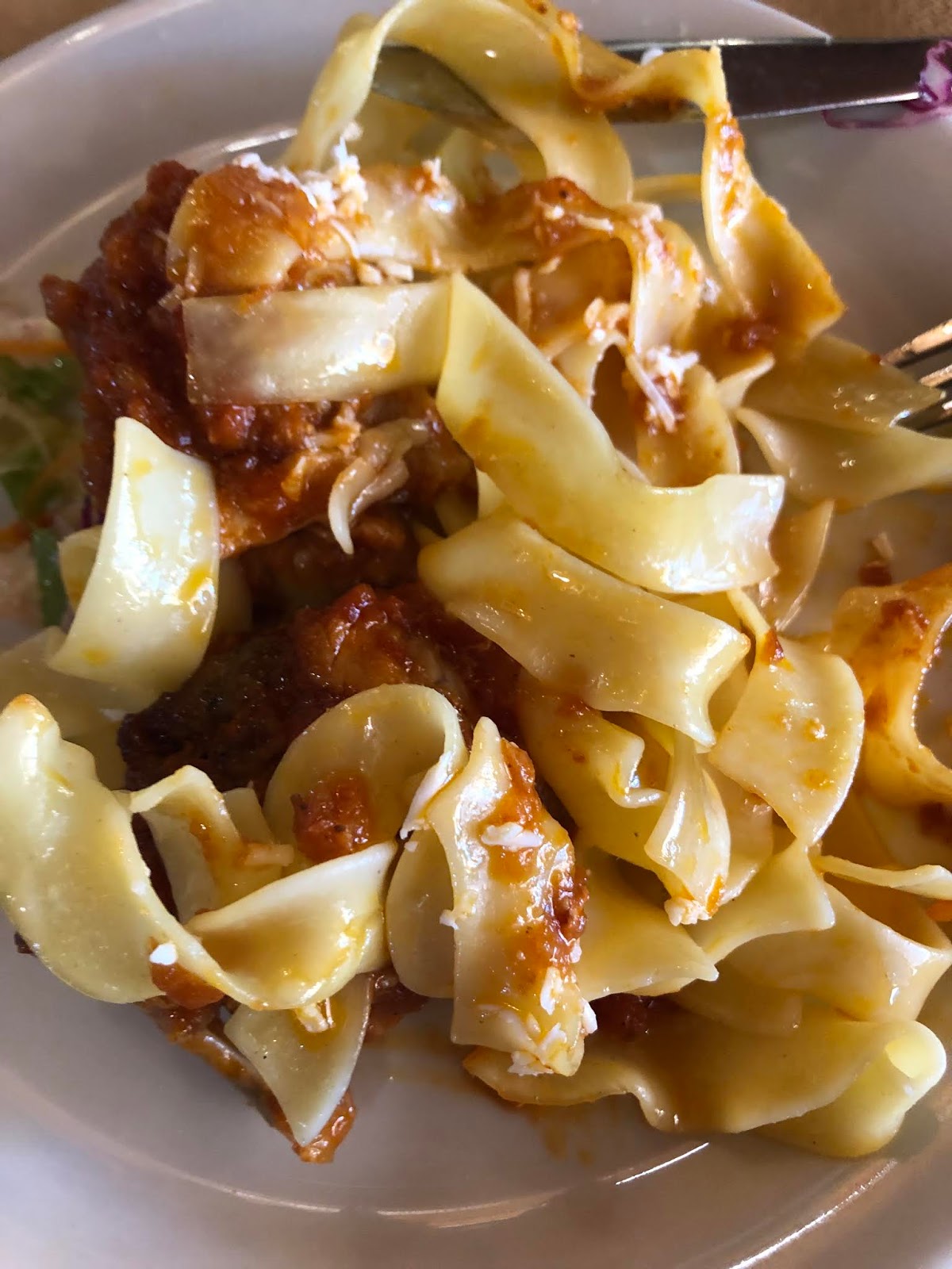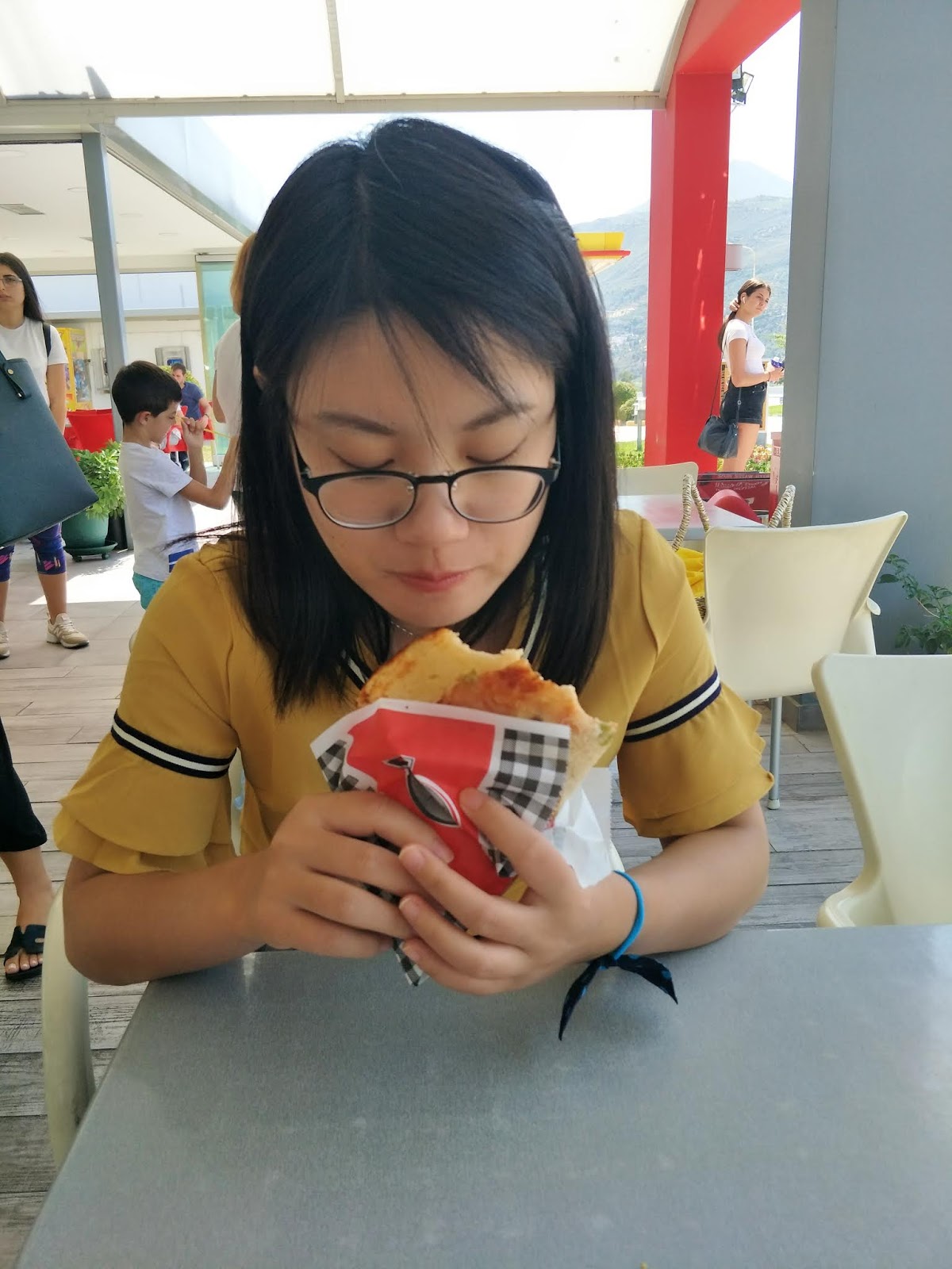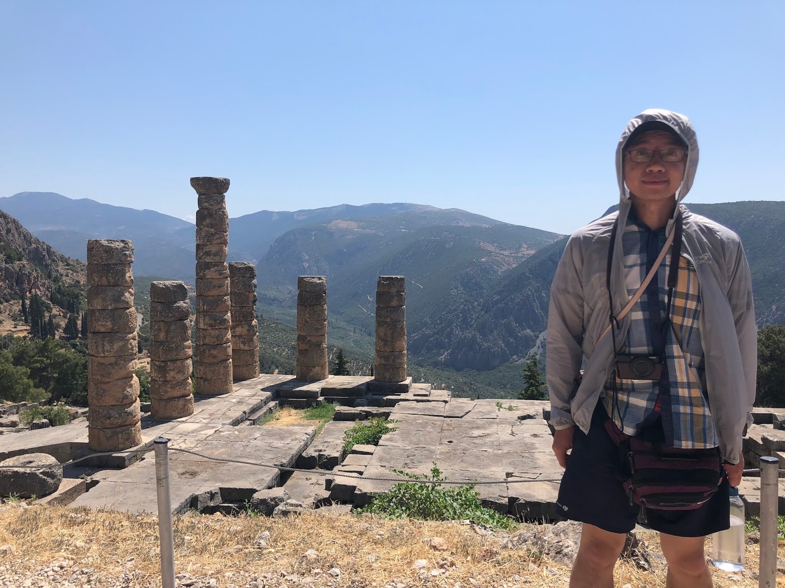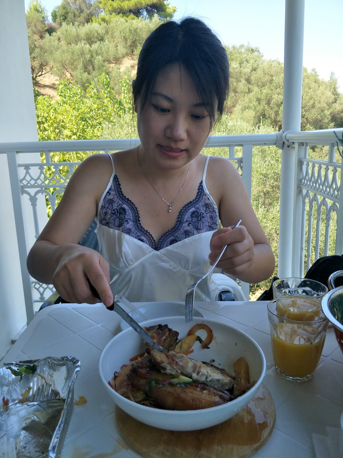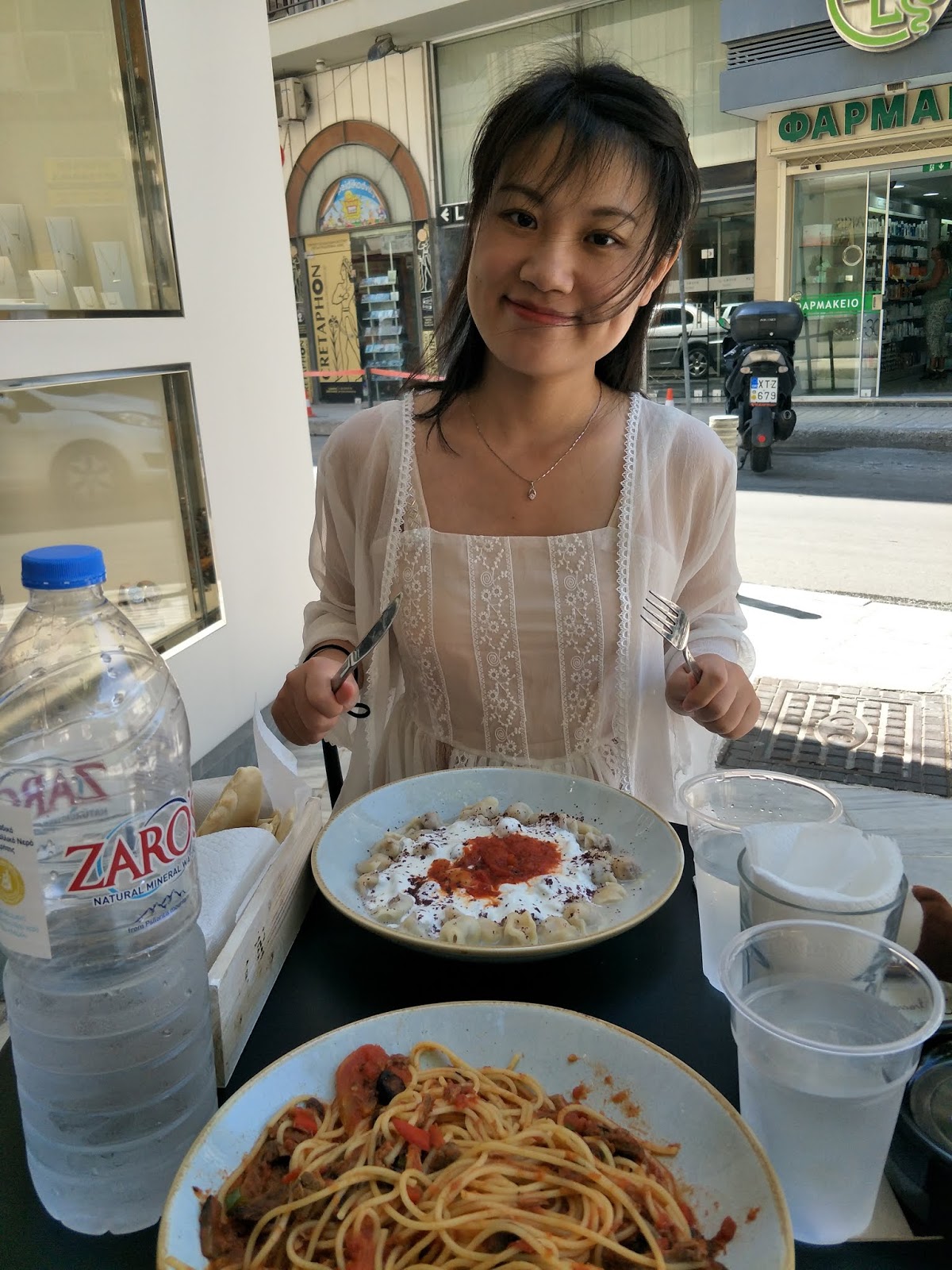 我们这个团基本都是西方面孔,不过也看到了除了我们之外的一个亚裔三口之家。中午就在德尔菲一家民宿似的餐馆吃饭,旅行社安排的统一的饭菜,竟然还有面条!吃饭时我们和这一家三口坐在一起交谈,原来他们是旅居加拿大的华人,儿子大概七八岁,相比于爸爸,妈妈看起来很年轻。来了希腊好几天了,终于见到华人游客了。