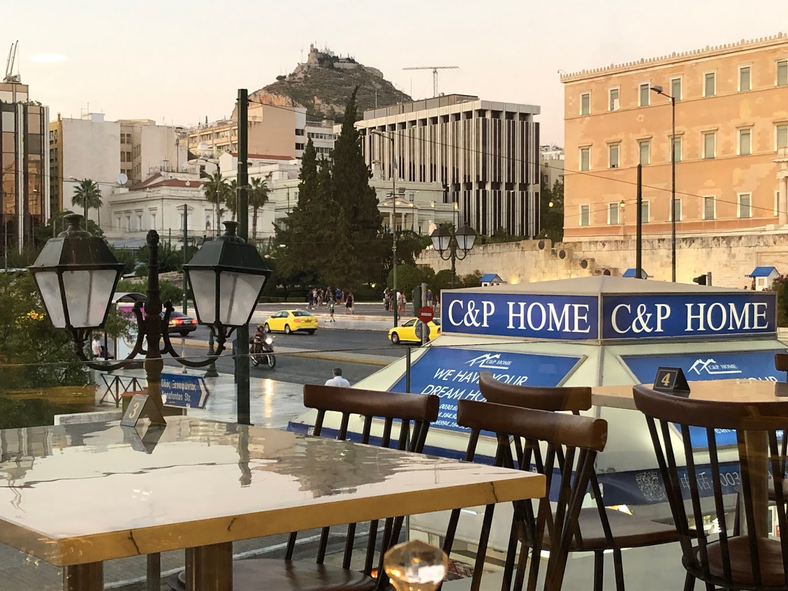 我们坐在中餐馆的二楼,刚好能看到对面的宪法广场,还能看到整点士兵交接的仪式。这家店的位置真的很好。这个古老国度的夏日傍晚温度舒适,微风习习,吃着自己热爱的食物,看着眼前祭奠文明和历史的仪式,这一刻也已成为我们旅行难忘的时刻之一。