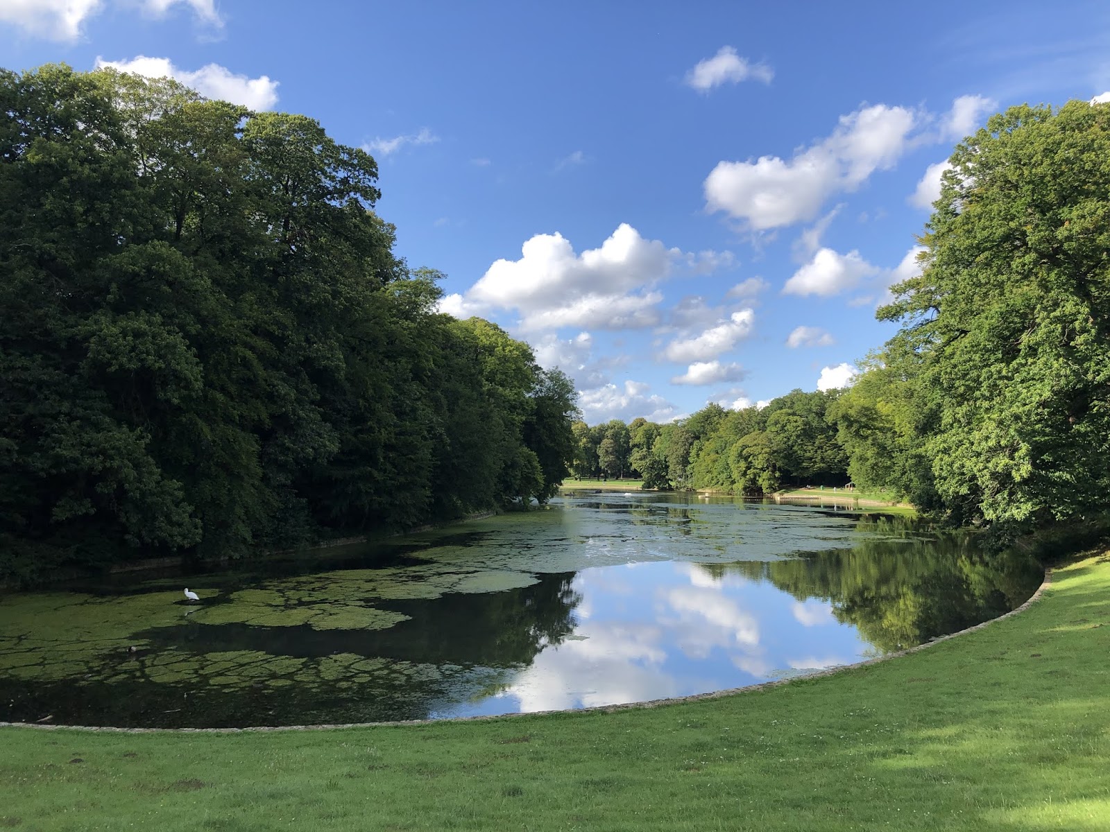 熊的公寓就挤在密集的建筑物中间。住的是一间麻雀虽小五脏俱全的单人studio。表扬某人为我做的包菜炒肉和大米粥,还吃到了好吃的面包喝到了好喝的牛奶。总之,来到比利时吃的第一顿非常满足。休息了两个小时,发现天已经放晴了,我们去就去了附近一个森林,森林中间有湖,还有大片的草坪。在城市地带建造一大片绿地,感觉这在中国是一件很奢侈的事情。虽然街上人不多,但是湖边、草坪上还有林间小路上都有悠闲散步或者躺着晒太阳的比利时人。由于离海边不远,而且地处高纬度地区,九月份的布鲁塞尔就开始转凉了,但是并不让人感觉到冷,海风吹着,浑身清凉舒适,十分惬意。坐在湖边的长椅上,我只想好好享受这美好的一刻。