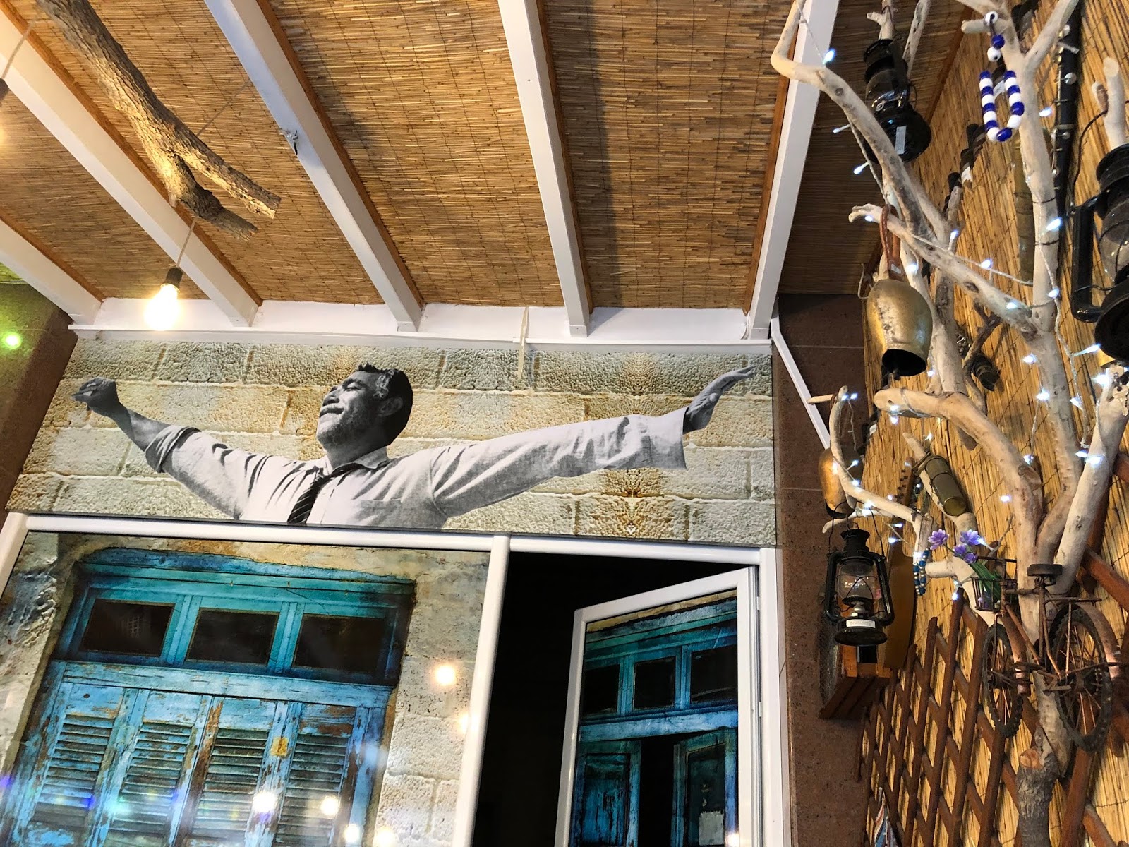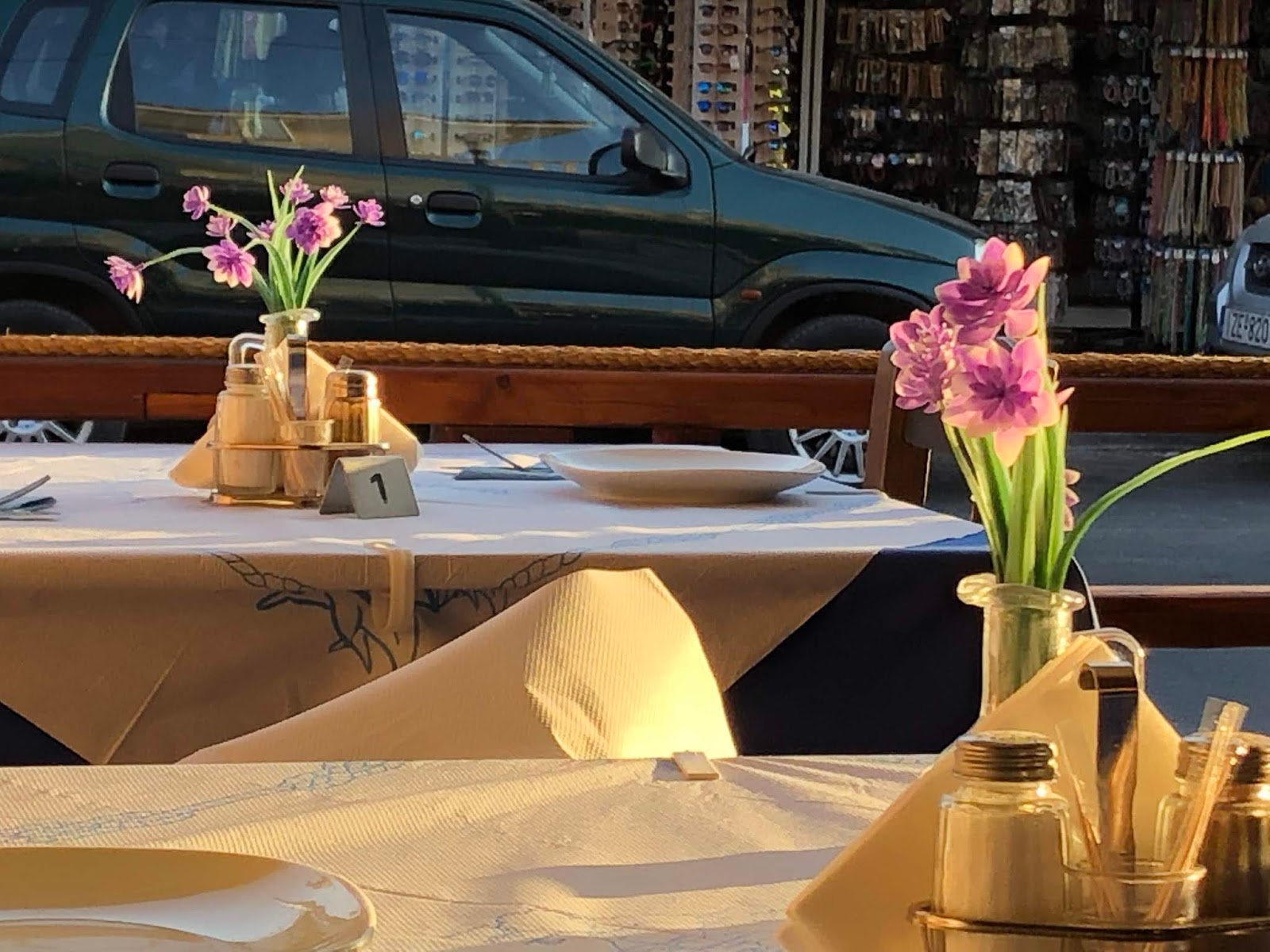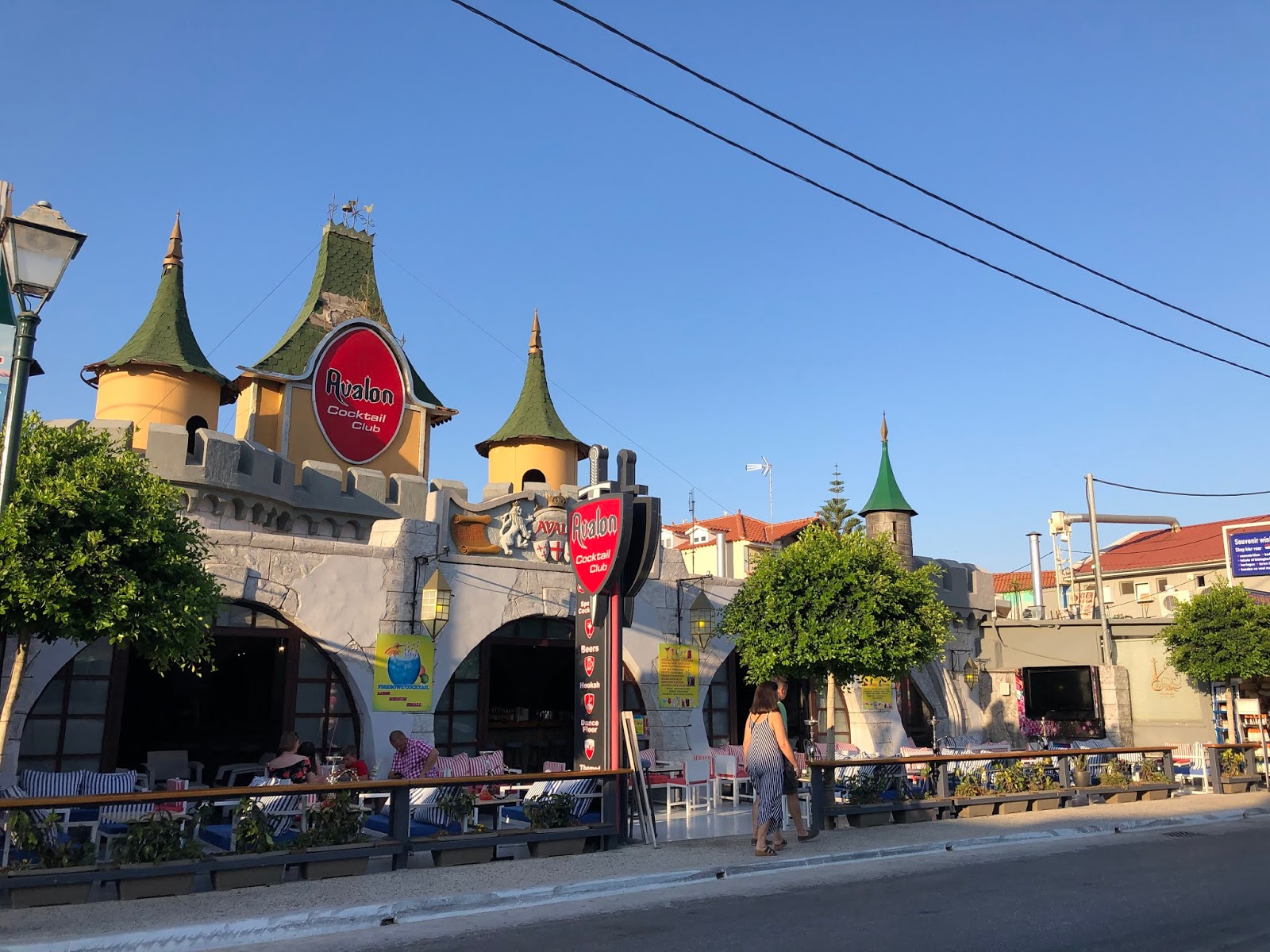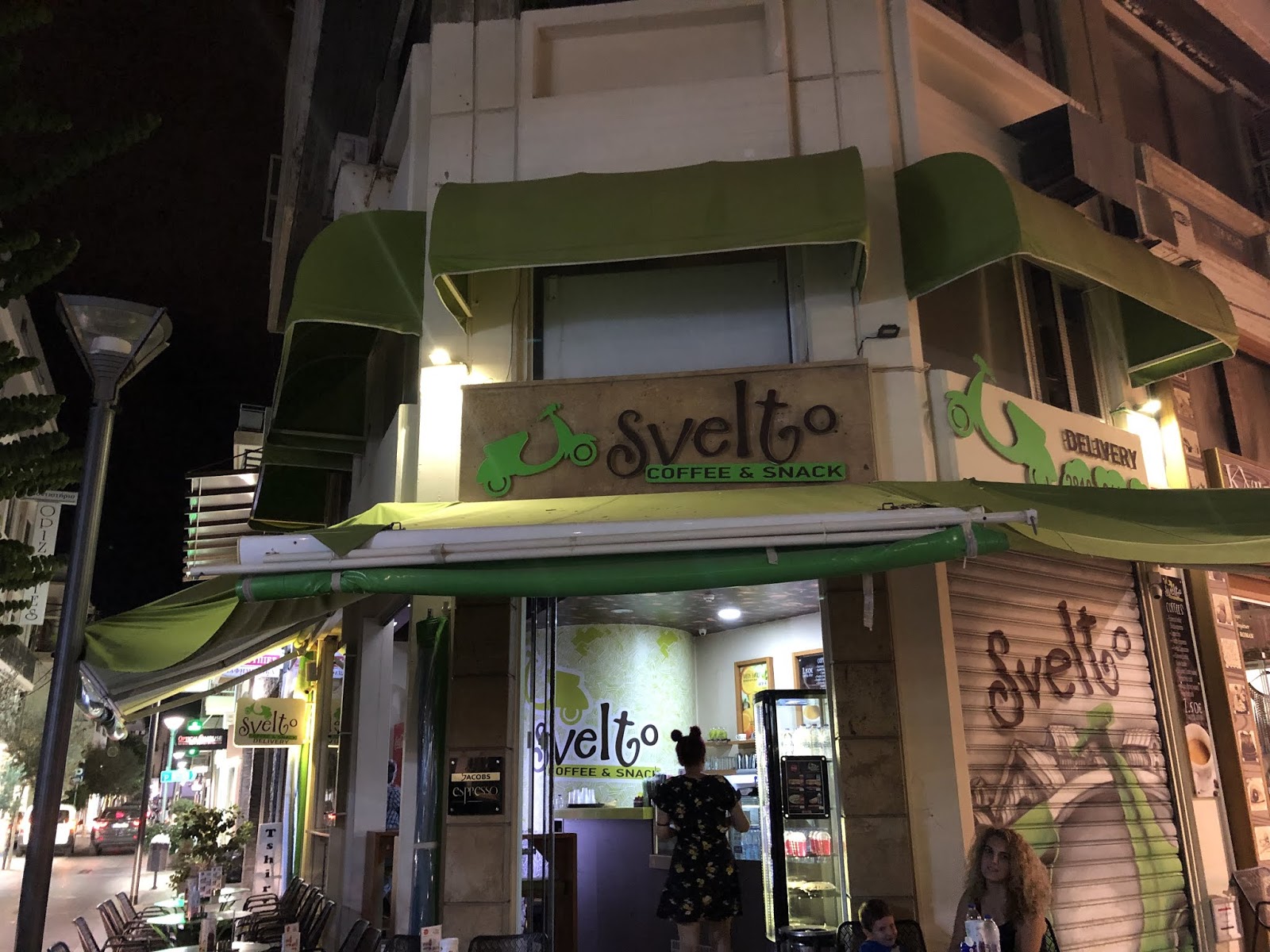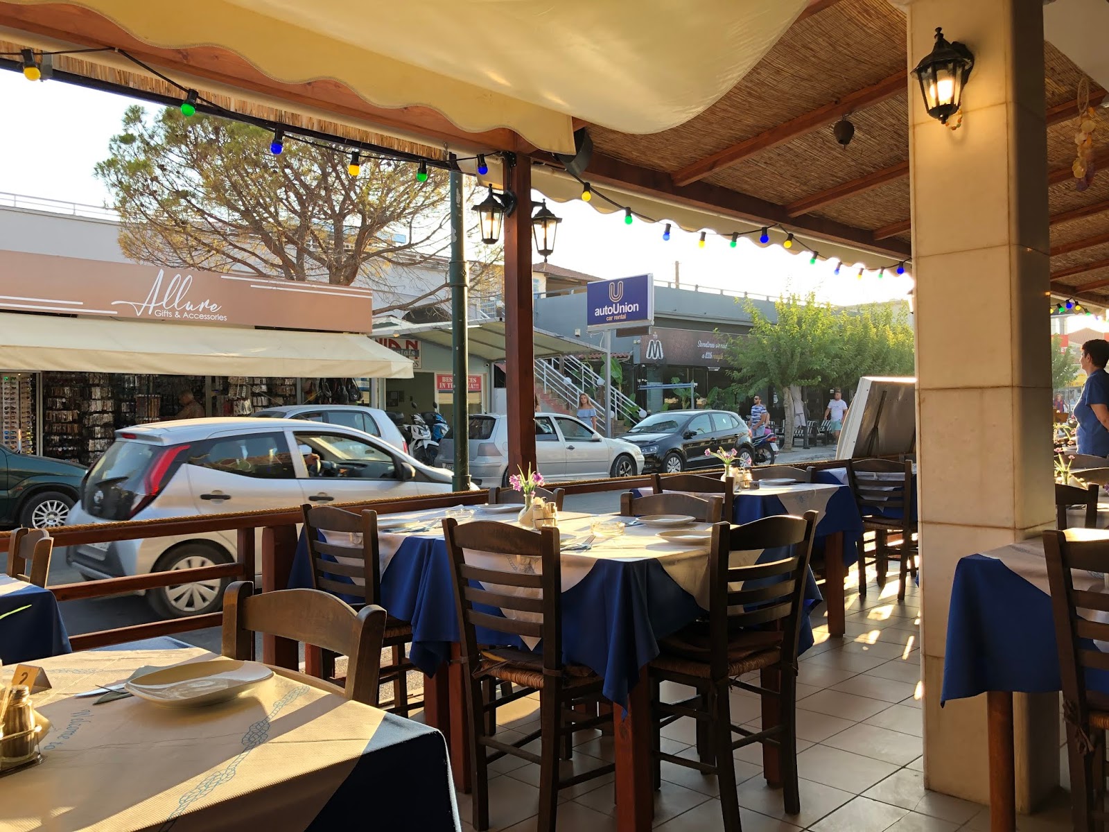 休整了一会儿,我们需要规划一下明天的行程。这次的旅行,扎金索斯安排了两天,但具体的行程没有提前规划,也是此次旅行唯一没有具体规划的地方。我打算发挥一下光和热,毕竟某人规划了一大半的行程,这次就由我来规划吧。来扎金索斯,当然少不了打卡沉船湾了。沉船湾不仅风景优美,而且因为拍摄了曾经的热播的韩剧《太阳的后裔》而被世人熟知。我在google搜索了扎金索斯的旅行社电话,打过去说可以预定明天的沉船湾一日游,还包括蓝洞。明天会有人来我们住处附近的加油站接我们。敲定了时间地点,我们就算是完成了一个大任务,剩下的时间可以随意安排了。快傍晚的时候我们打算出去走走,顺便再吃一顿海鲜大餐。我们的住处在一个小小的山坡上,下了山坡往右拐就是一条沿着岛边缘建的美食街,街两边的每家餐馆都很有特色,以海鲜为主。还有一些卖长裙和沙滩帽的衣帽店、纪念品店,每一家店都极尽海岛特色。