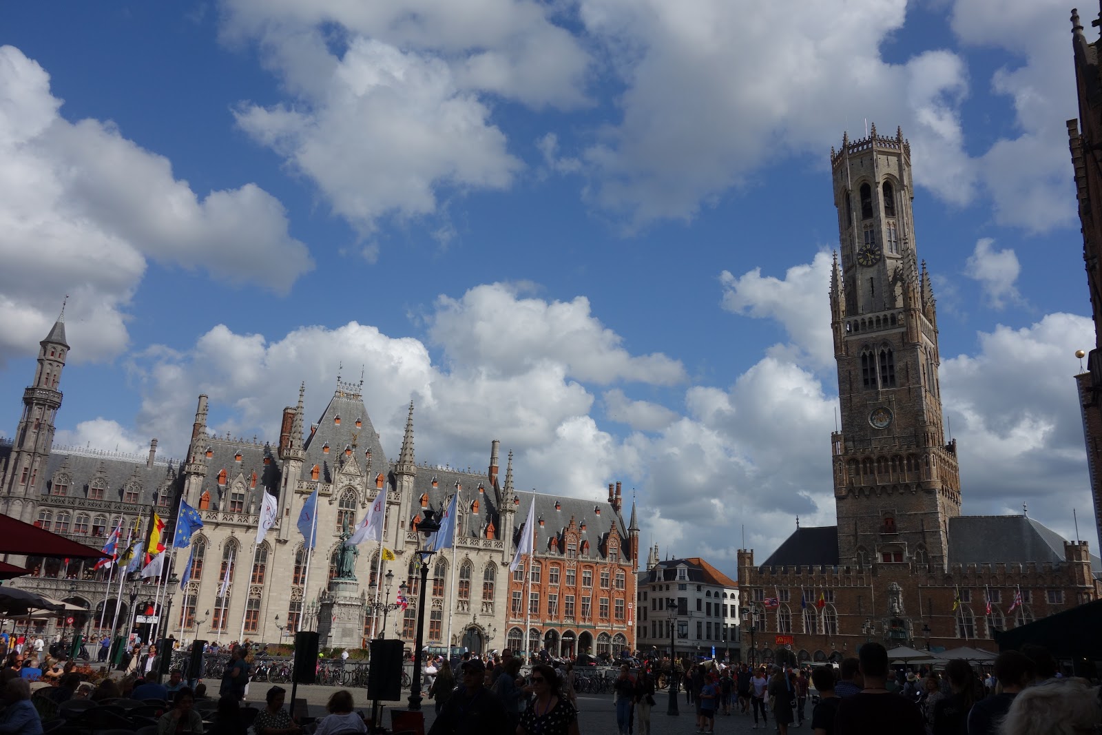 吃完午饭,我们来到布鲁日的市政广场,也称作市集广场。和护城河上慢悠悠的氛围相比,这里人群稍微繁杂了一些,如果正好赶上市集的话会更加热闹。市政厅建筑古老文艺又气势磅礴,旁边是布鲁日钟楼。