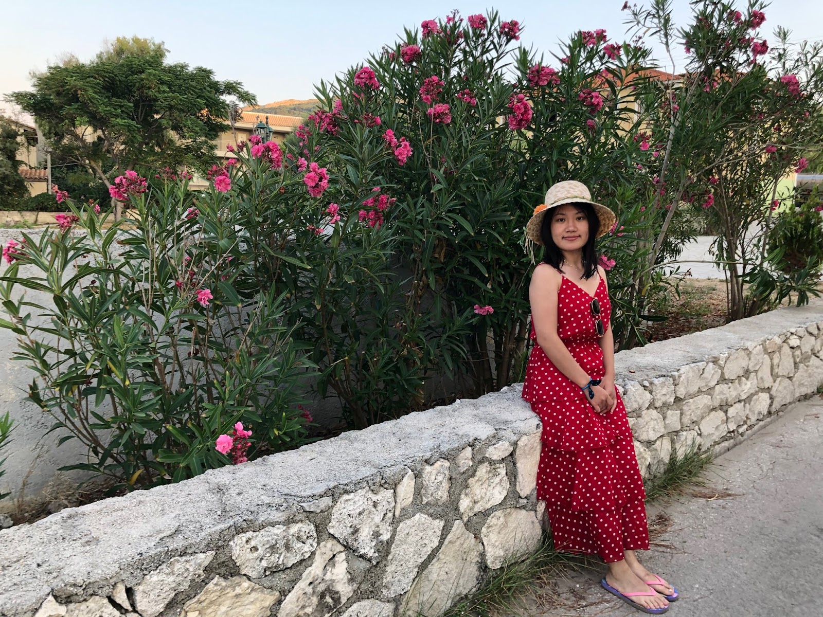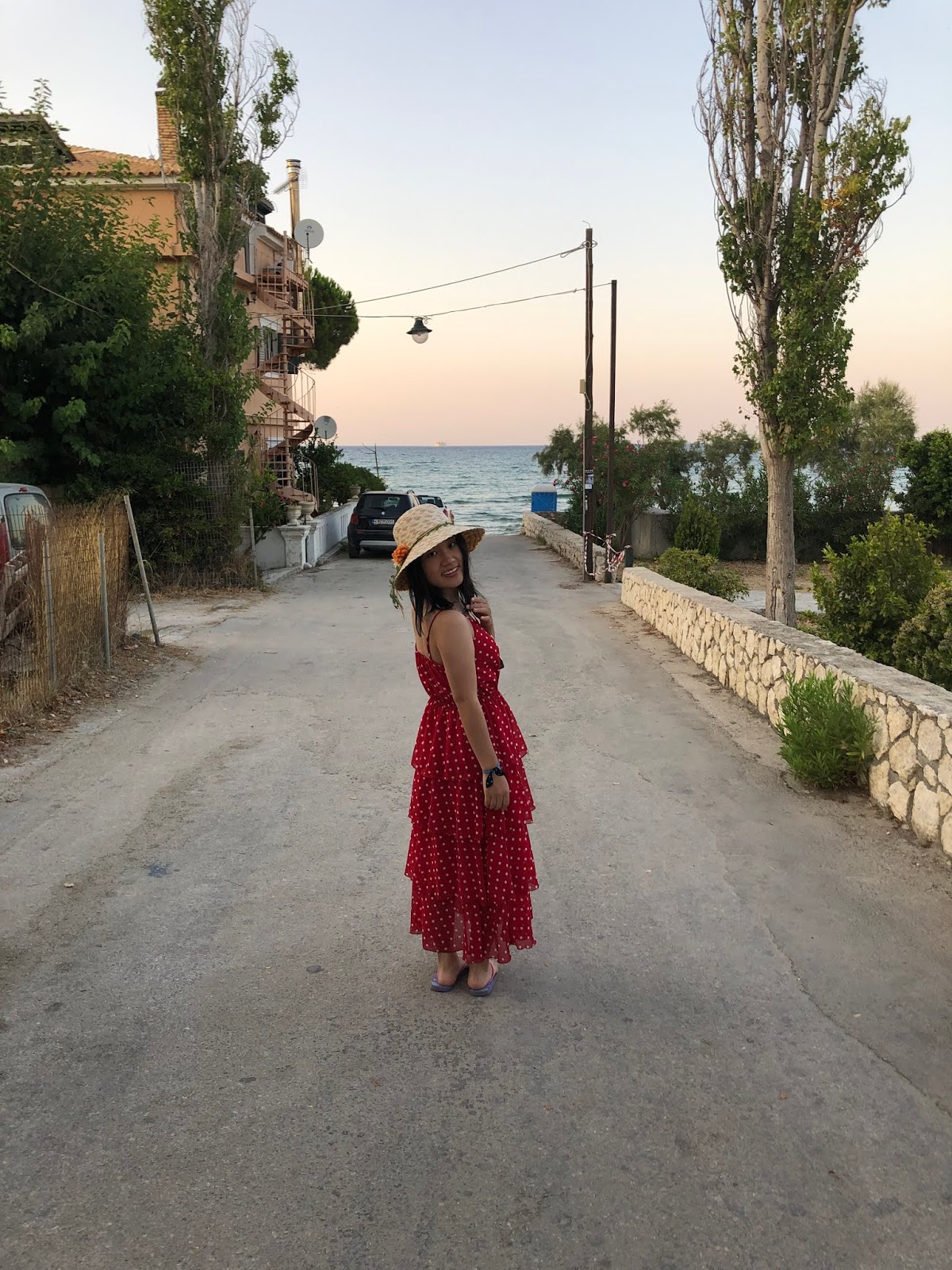 扎金索斯实在太美了,我们不能就在房间里虚度光阴呀,休息好了之后我们又出去了,打算去附近的海边玩。我换上了自己最喜欢的红裙子。这么久终于有机会穿啦。这边有很多出租四轮摩托车的车行,路上都是这样的车辆出没,本来熊想租一辆带我去远处兜兜风,结果从2016年开始希腊不承认中国驾照了,因此我们没有资格开这边的车,只好作罢。