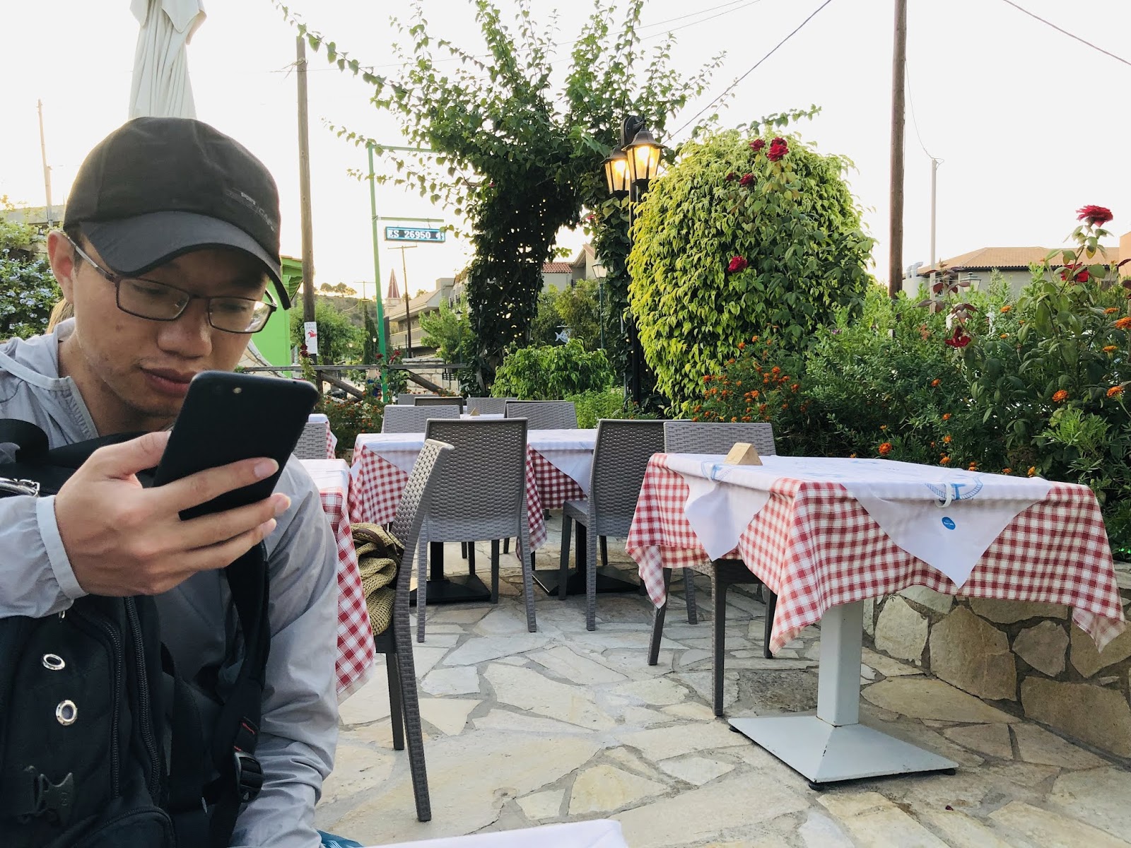 我们赶紧用熊手机给宾馆打电话,蹩脚的英语也算表达清楚了,手机还在房间里,前台态度很好,说把手机给我们保存好直到我们回去取走。此时,我对希腊的好感又加了一分。似乎在希腊遇到的每位工作人员都很佛系,做什么都没有复杂的手续 (比如直接退房,也不检查房间有没有物品损坏,手机回去直接取,什么也不问),不在乎得失,不知道是不是真是这个样子的。