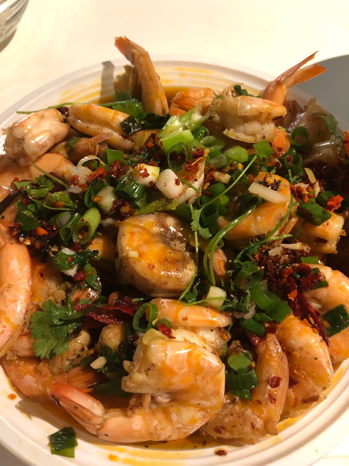 晚上我们在朋友家做饭吃,我还做了香辣虾,这是我在美国经常做的一道菜。异国他乡,和朋友聚聚,心里很温暖。