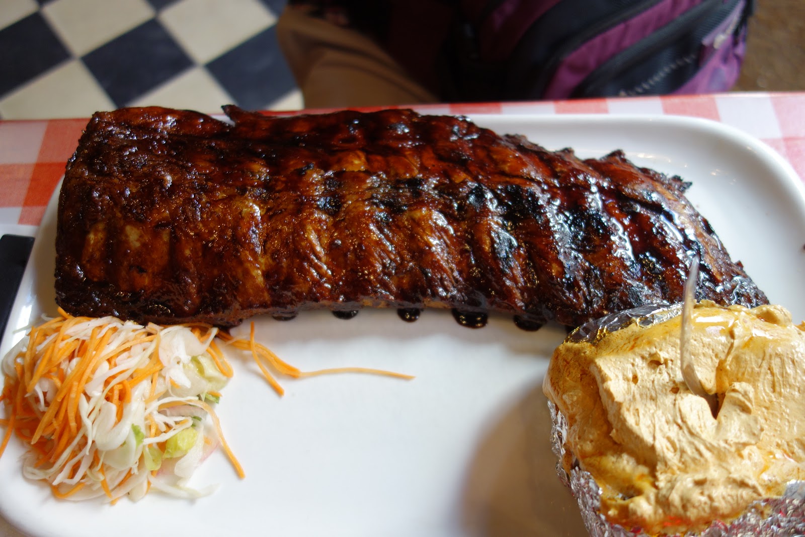 晚上又找了一家很文艺的店,吃了烤排骨。还是超级好吃!!!就是稍贵了些,而且必须要求点酒水,我们就要了一瓶当地比较有名的矿泉水。。。而且主食也要超过一定数量才行,本来我们觉得一份烤排骨两个人就够了(因为中午吃的实在太多了),没办法只能又要了一份鸡翅,虽然饿意不是很强烈,我们最后还是没能抵挡住美食的诱惑。。。真是撑死了。。。。