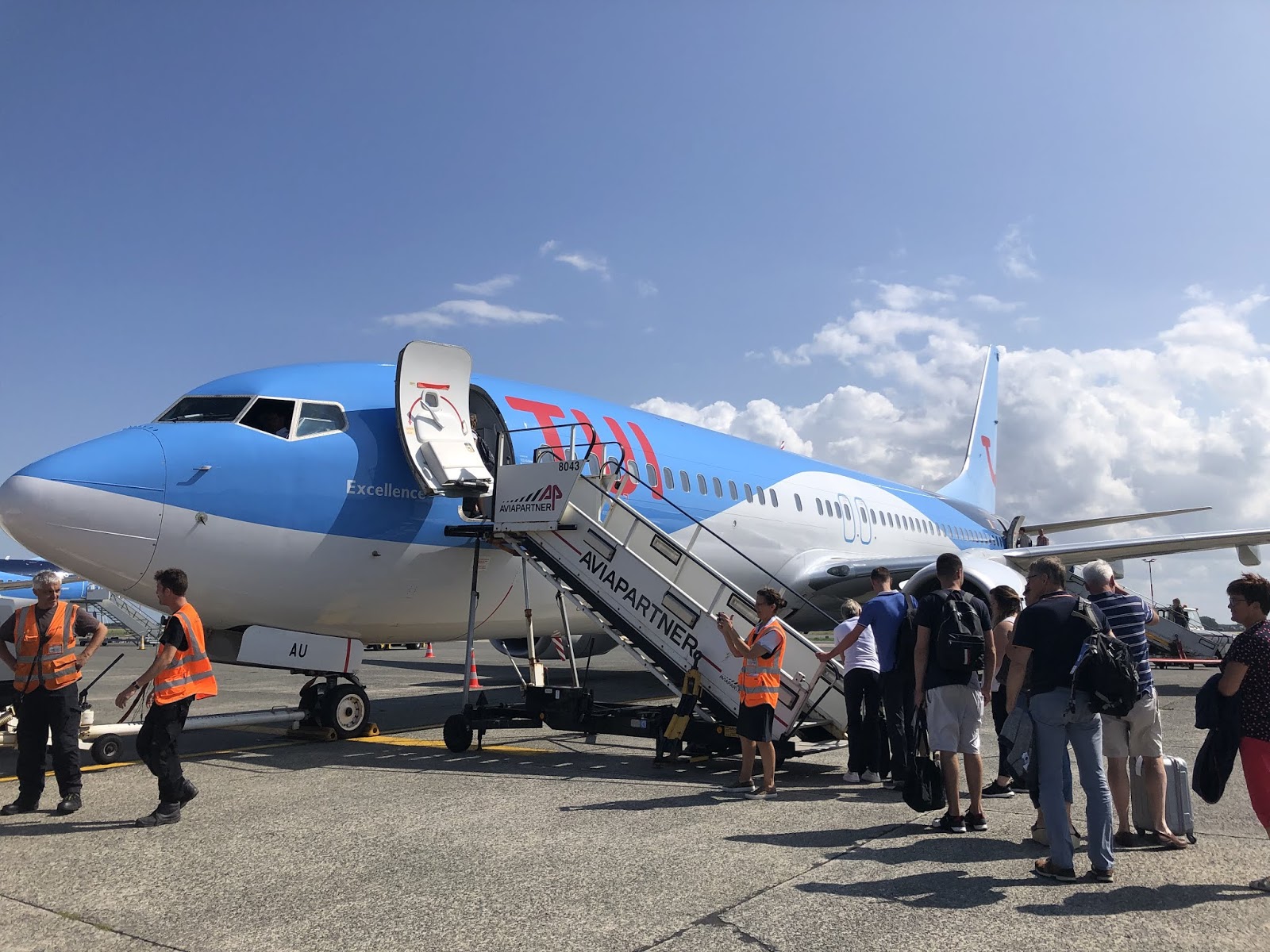 有一趟专门的公交可以通往机场,上了公交为了确保不出错,我问了公交车上的当地人这趟公交是不是去机场的,可能奥斯坦德是个小地方,这里的市民英语说得不怎么好,我们连比带划地互相交流之后,才发现这趟公交不去机场。一位好心的黑人小姐姐用蹩脚的英文告诉该怎么找到去机场的公交站。我们连忙下车,跑去她指的方向。坐上正确的公交之后,问了司机,确保了这是去机场的车,而且直接把游客放到机场门口。因为中间耽误了会儿,这时距离飞机起飞已经只有半个小时了。熊接到了一个电话,是机场的工作人员打来的,问他是不是要乘坐航班。看来时间真的是有点紧张了。下了公交我们飞奔到候机厅,两位工作人员小姐姐直接跑到我们面前,问我们是不是XXX,然后看了下护照就把机票给我们了。还告诉我们,你已经到机场了,no hurries and calm down. 哇,这服务真是太周到了,再加上前面为我们指路的黑人小姐姐,我俩对奥斯坦德的好感顿增。机场真的太小了,只有一个候机厅。过安检的时候,安检小姐姐满脸笑容地问我是不是XXX,她说当时是她发现我们还没有check in,决定给我们打电话的。