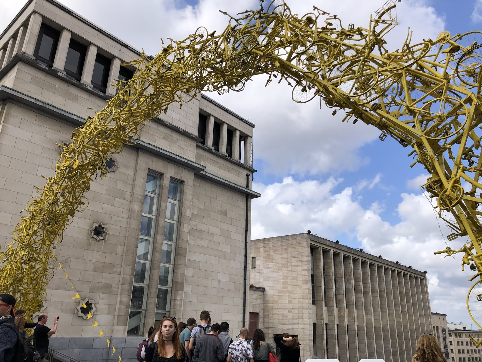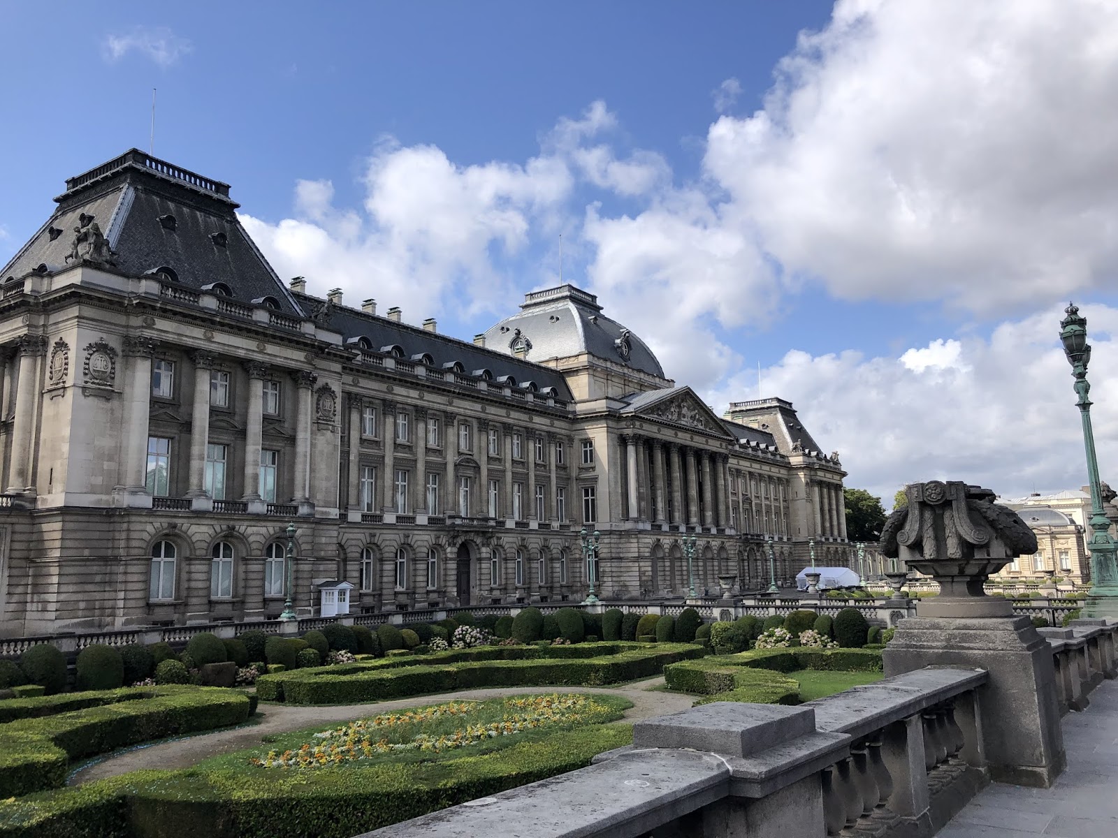 布鲁塞尔的公交车动不动就会改路线,有时候碰到市区有游行活动或者施工,公交就会绕路走。我就“很幸运”地碰上改路线了。没法直接坐到火车站,我们只好在选择了一个离火车站不远的地方下车,走去火车站。不过这样我也有机会看看比利时王宫了,终于有机会拍照啦。