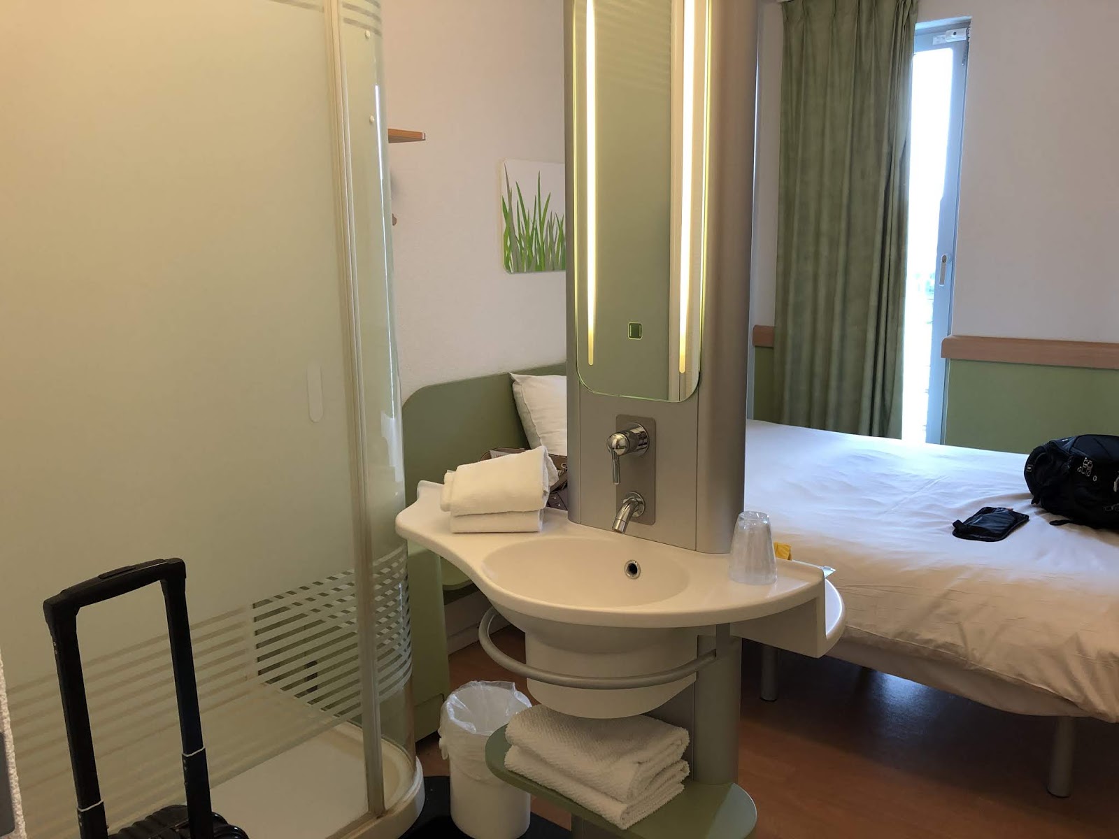 进了我们包间,才发现其实是个四人间,映入眼帘的是两张单人床,每张床上方还有一张暗藏的床,直接拉出来就又可以睡人。卫生间设备也很好,很干净。