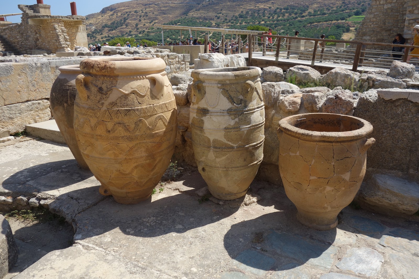 我们坐出租车来到了今天的第一站,克诺索斯王宫遗址,这是米诺斯文明的遗迹,是传说中米诺斯王的王宫。 米洛斯王宫据传说由希腊神话中的著名工匠代达洛斯建造,他是墨提翁的儿子,厄瑞克透斯的曾孙,是厄瑞克族人。他有一个儿子叫做伊卡洛斯。代达洛斯因嫉妒自己弟子塔洛斯的才华,而杀害了他,因此被赶出了雅典。他来到克里特岛的国王米诺斯建造了一座迷宫,用于关押半牛半人的怪物弥诺陶洛斯。后来,他想回家乡,但不被米诺斯允许。他想,虽然米诺斯封闭了陆地和海洋,但天空是自由的。于是他用羽毛和蜜蜡给自己和儿子伊卡洛斯制成翅膀。飞行前,他告诫伊卡洛斯不要飞得太低,否则翅膀会沾水;不要飞得太高,否则太阳的热力会融化蜜蜡。但伊卡洛斯没有听告诫,太过接近太阳,蜜蜡熔化,羽毛随即四散,伊卡洛斯便坠海而死。米诺斯遗址的意义有多重大呢?它的发现直接将古希腊的文明史向前推进了一千年。好了,我这个历史盲在某人每天的耳濡目染下,了解了这些,再多的也不知道了,直接上照片吧。。。