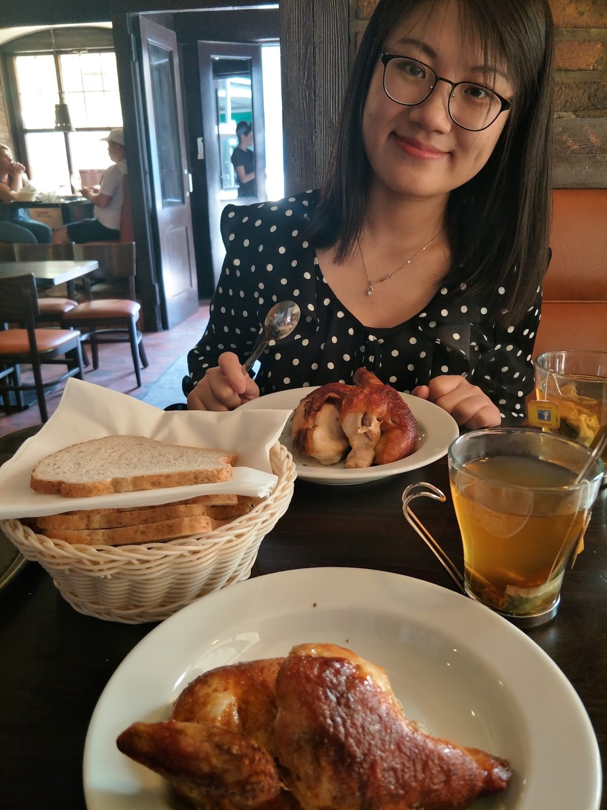 为了不误机,我们没有在码头玩太久,离开码头后找了家烤鸡,吃完就准备去机场啦。