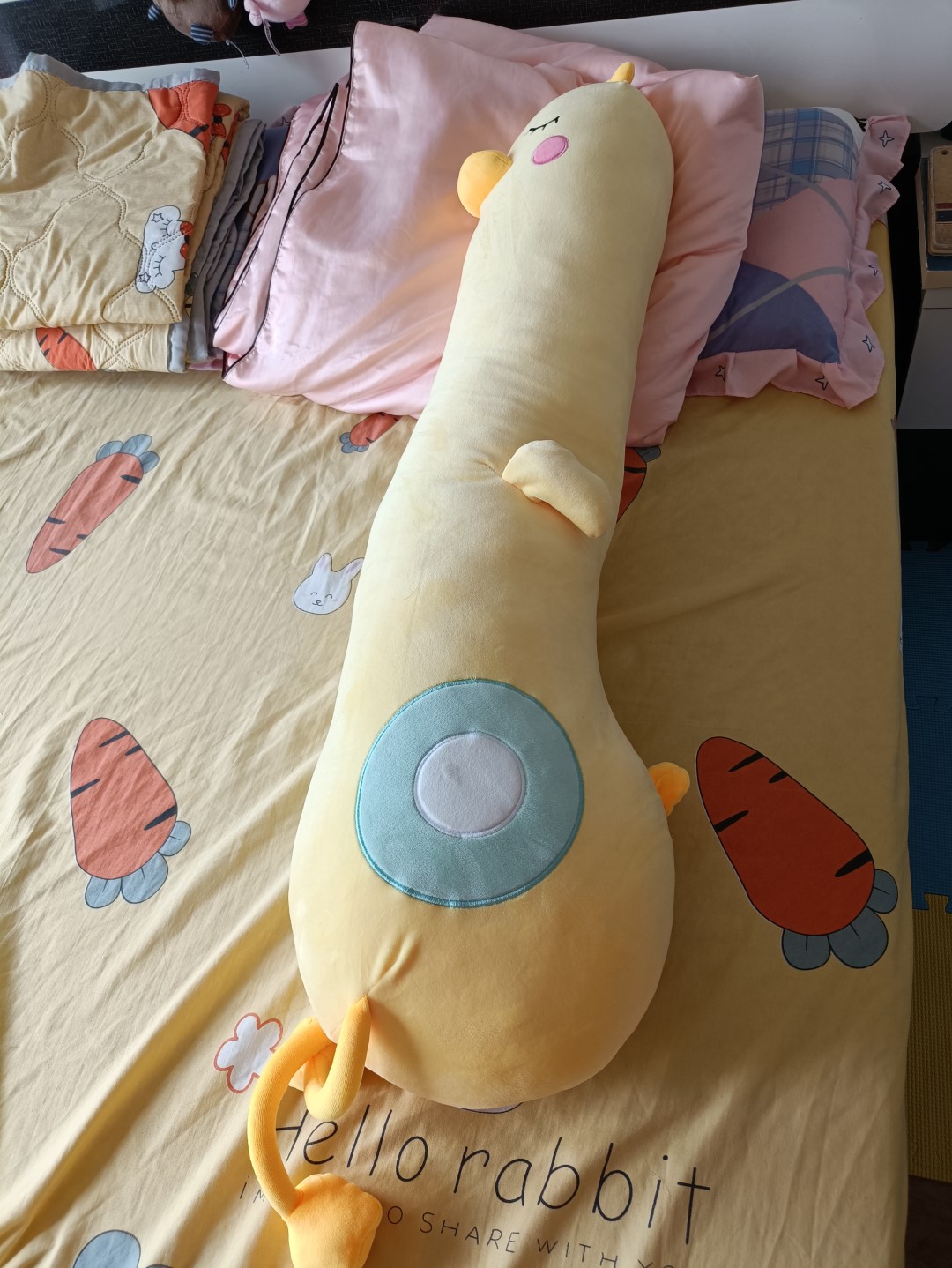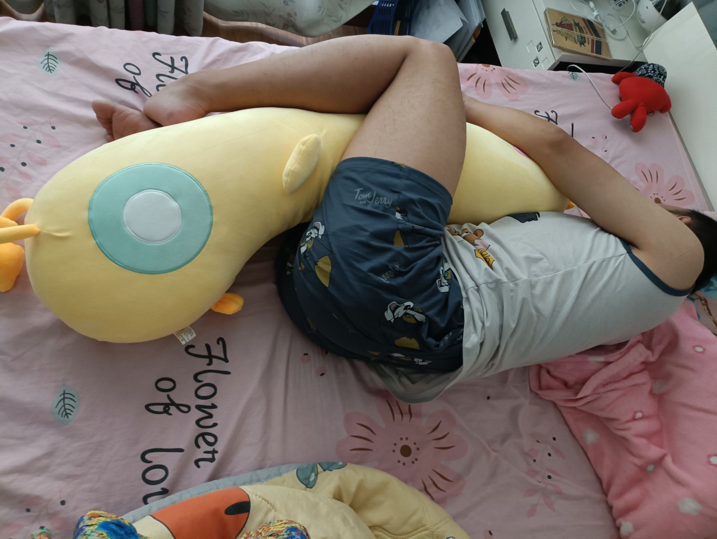 就发现他在紧紧抱着我的抱抱鸡